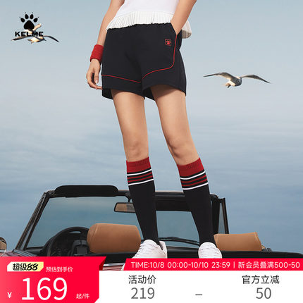 KELME卡尔美针织运动裤女2025夏季新款棉质潮流撞色插条跑步短裤
