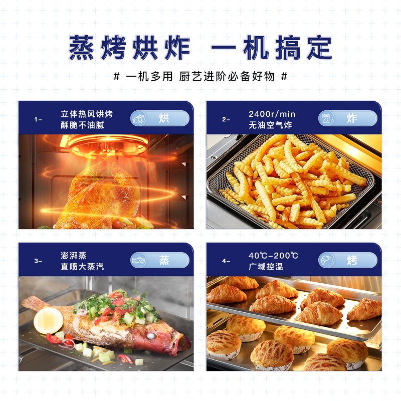 巧康蒸烤炸一体机高端空气蒸烤箱无油全自动触屏智能空气炸锅烤箱