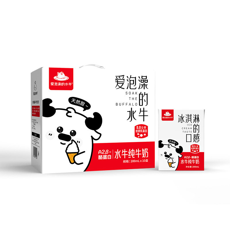 爱泡澡的水牛纯牛奶8.0克蛋白质200ml*10盒学生儿童营养早餐奶