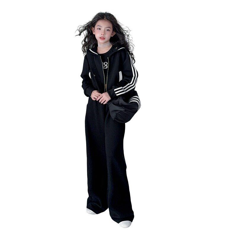 女童海军领卫衣运动套装2025春秋季新款炸街宽松外套阔腿裤两件套