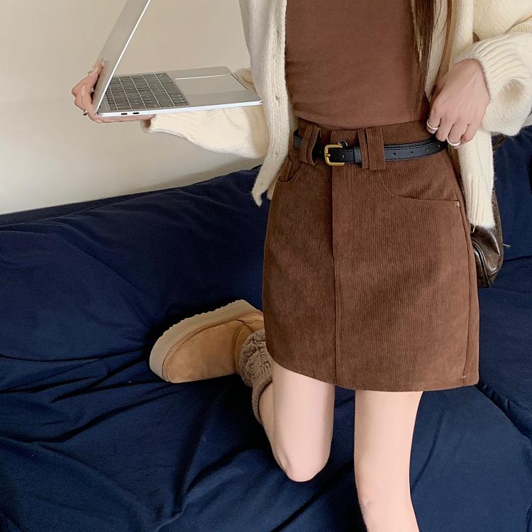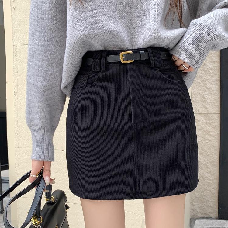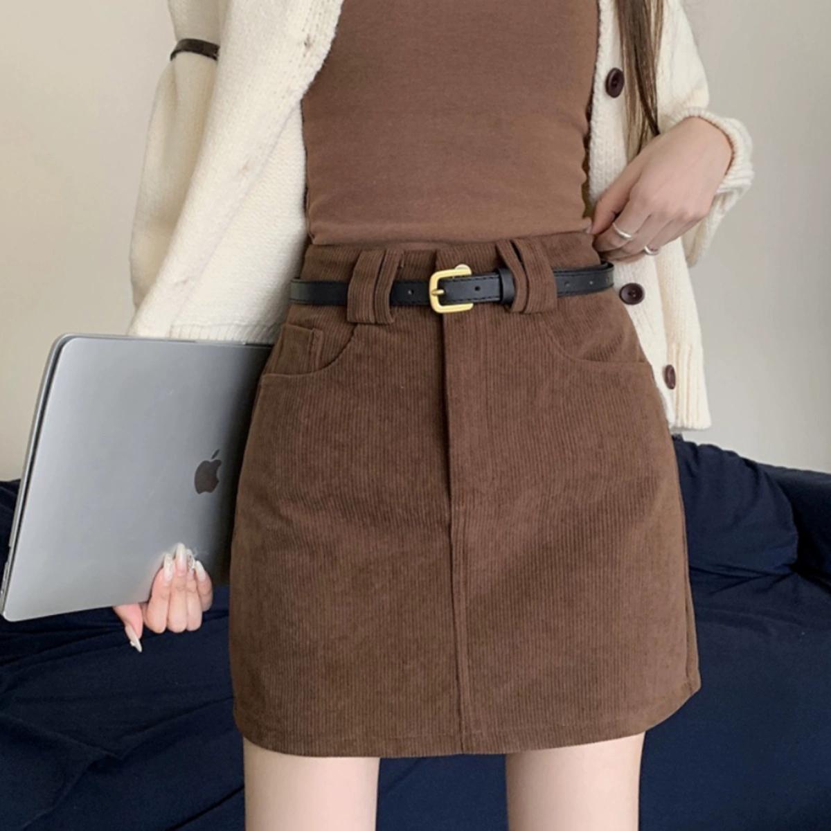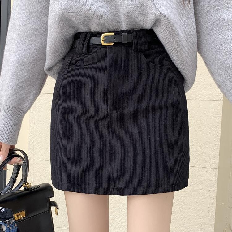 大码咖色灯芯绒半身裙女秋冬黑色短裙小个子高腰显瘦包臀裙a字裙