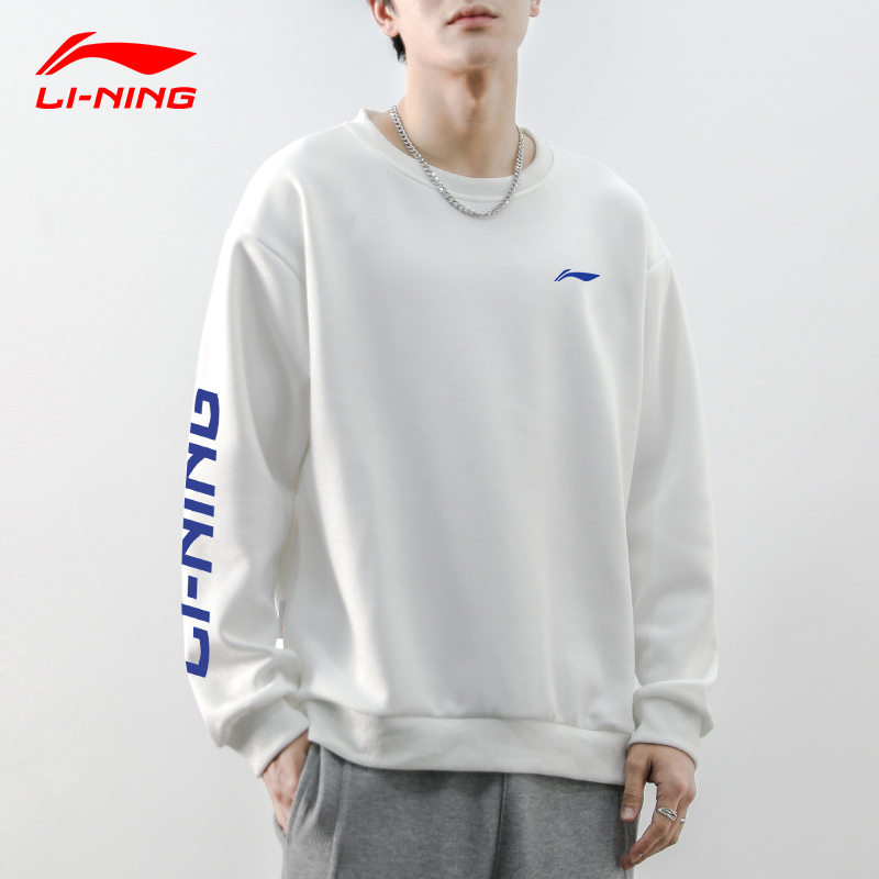 李宁白色圆领卫衣男士春秋季新款外套潮流休闲运动长袖透气无帽衫