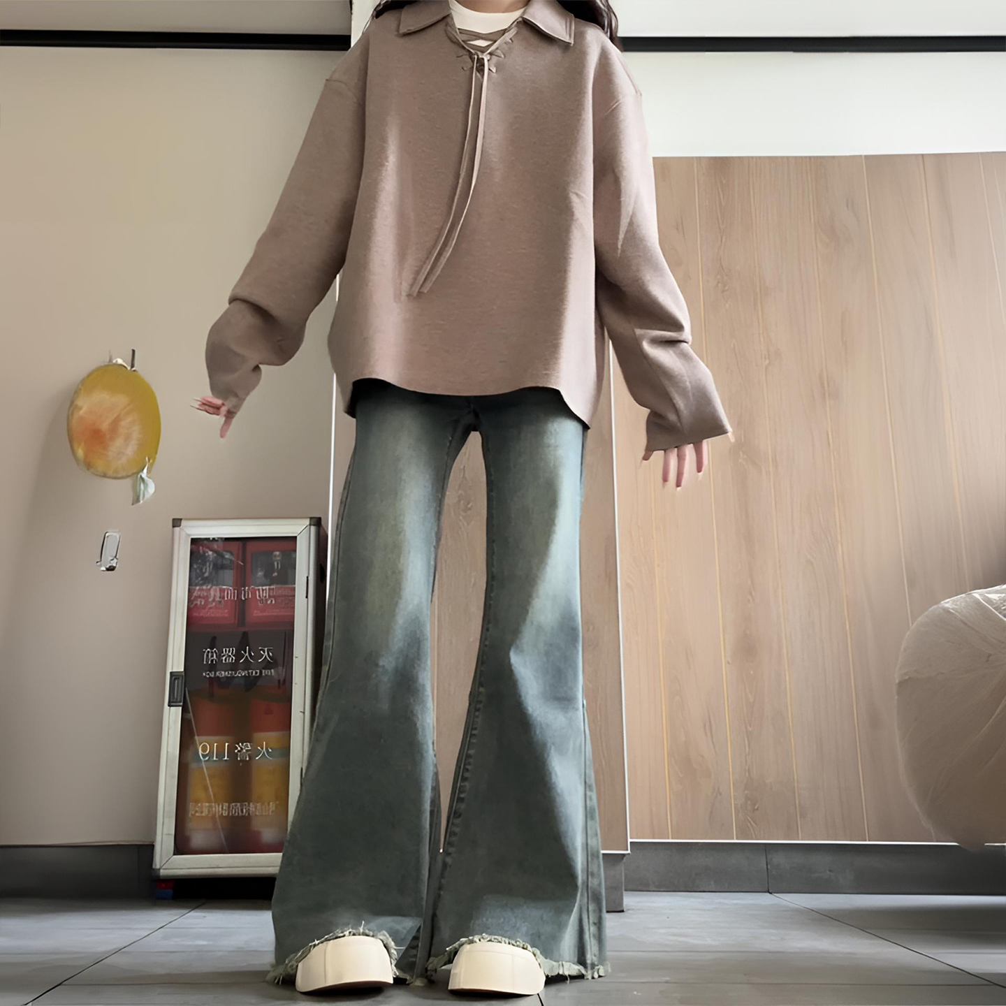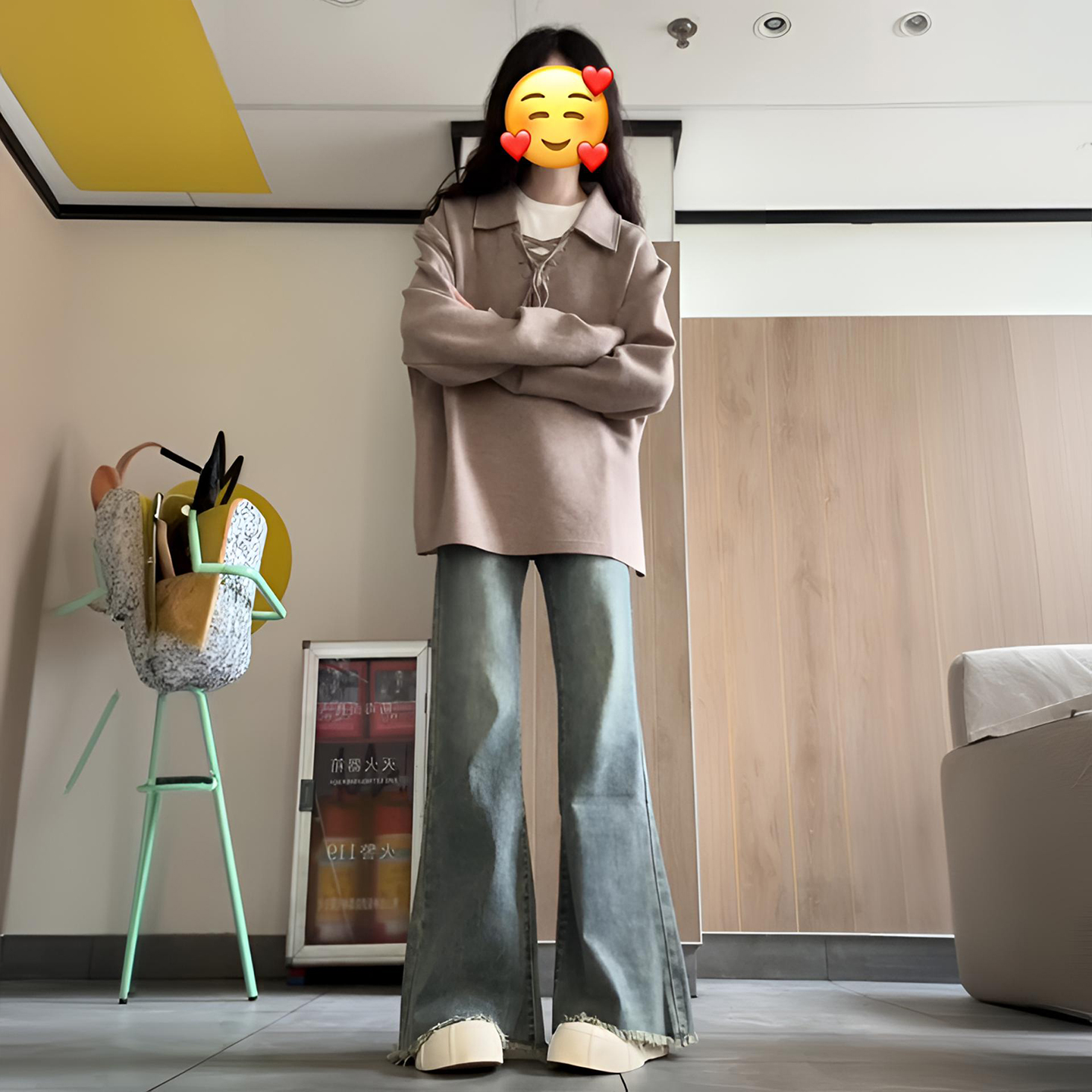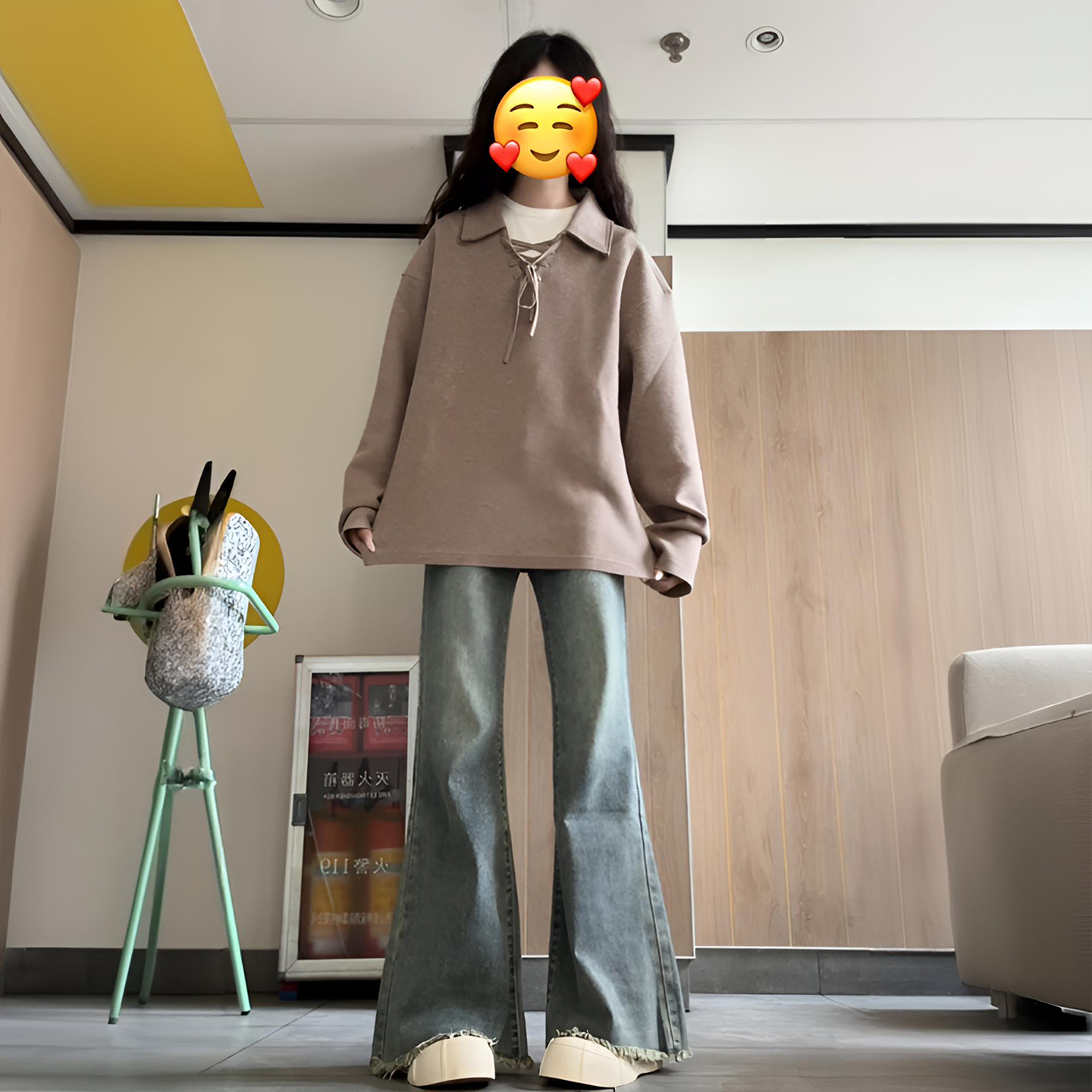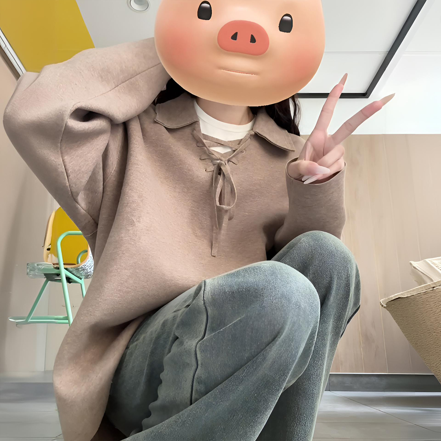 300斤大码女装学院风绑带设计长袖t恤女胖mm韩版休闲百搭新款上衣