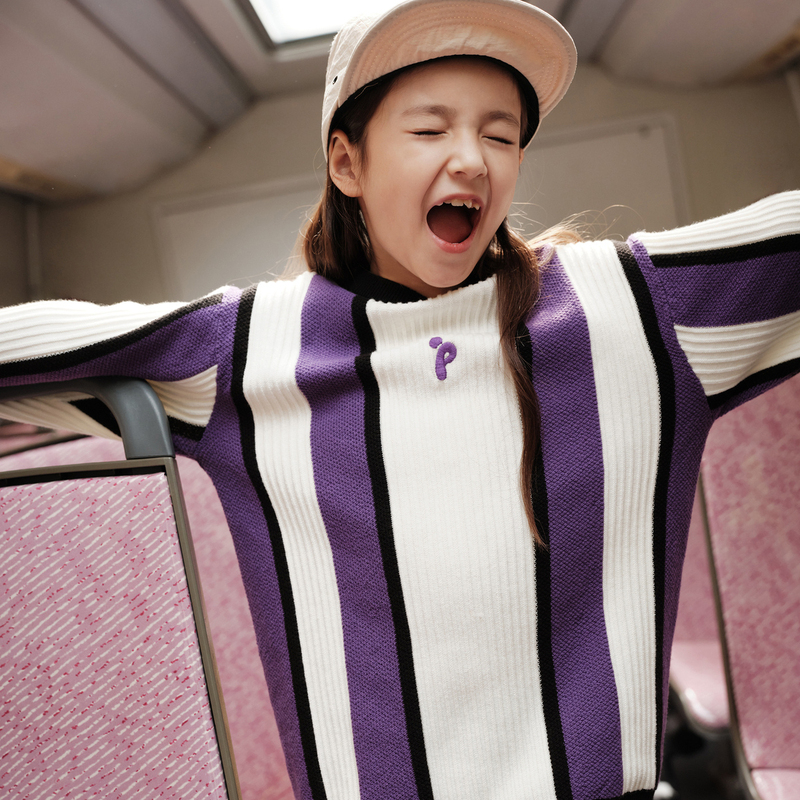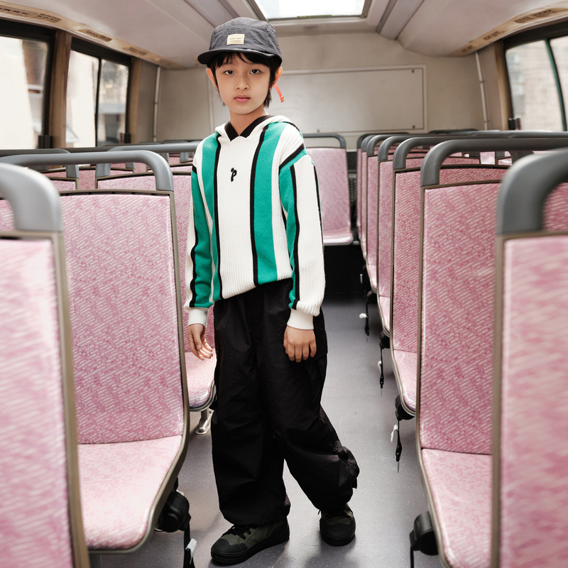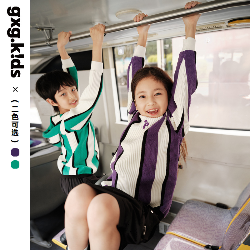GXG童装春季儿童毛衣中大童撞色拼接条纹连帽针织衫