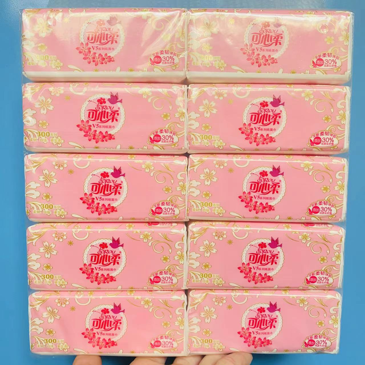 可心柔抽纸10包批发实惠家庭装干湿两用面巾纸家用卫生纸巾餐巾纸