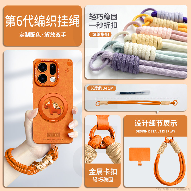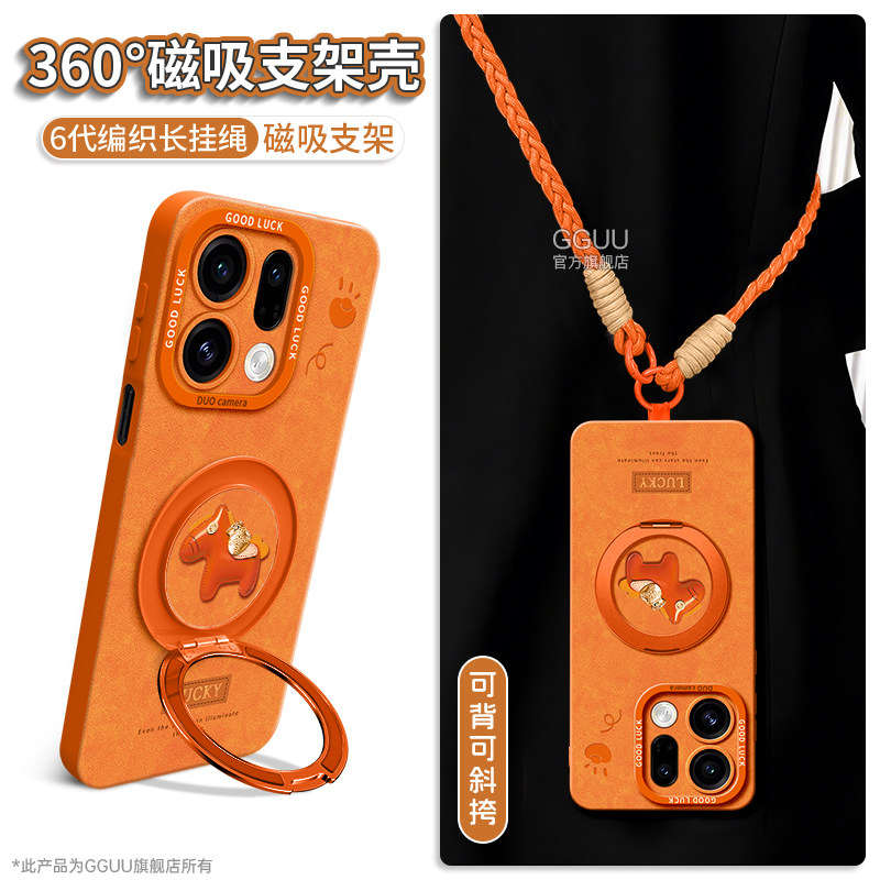 磁吸支架适用findx9手机壳x9pro新款x9保护套find斜挎可背链腕带findx8挂绳ultra女pro硅胶oppo年findx7橙色p
