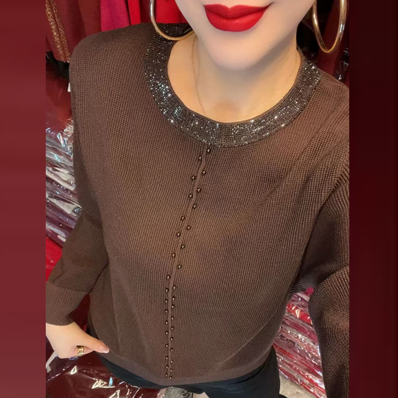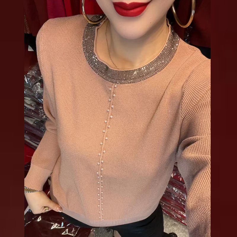圆领烫钻遮肉针织衫宽松减龄上衣