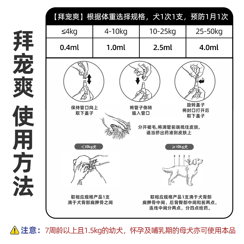 拜宠爽狗狗专用驱虫药除虫杀蚤蜱虫专用体外驱虫药金毛拜宠爽
