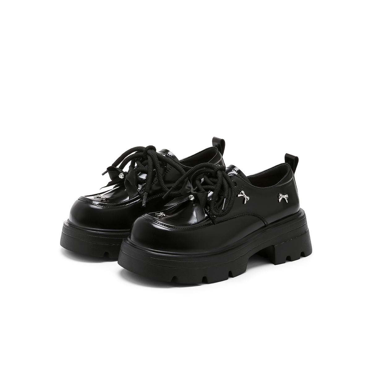 St&Sat/星期六春秋新款蝴蝶结乐福鞋粗高跟系带单鞋女SSD1112C2H