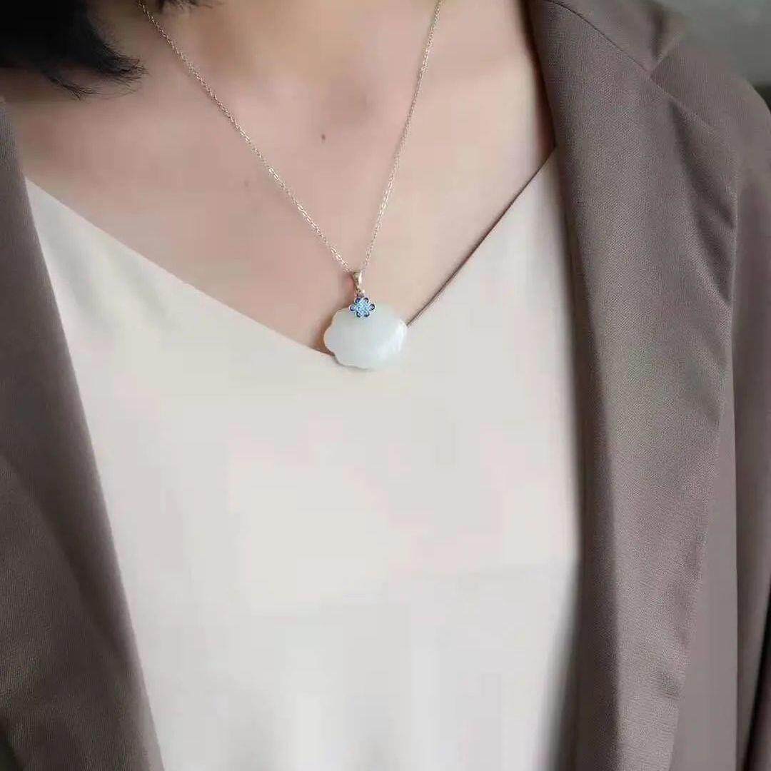 烧蓝中国结s925银复古吊坠项链女款保平安锁长命锁和田玉项坠国潮