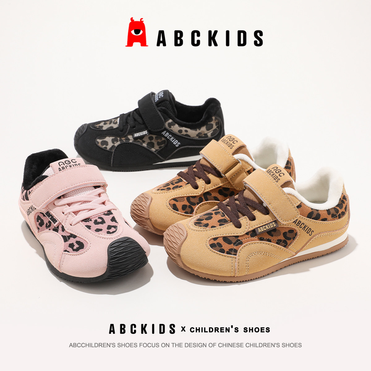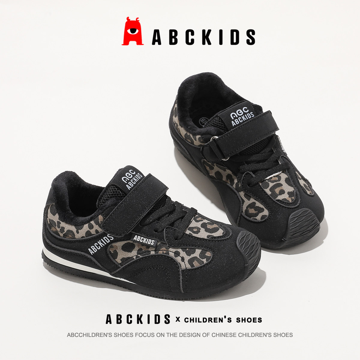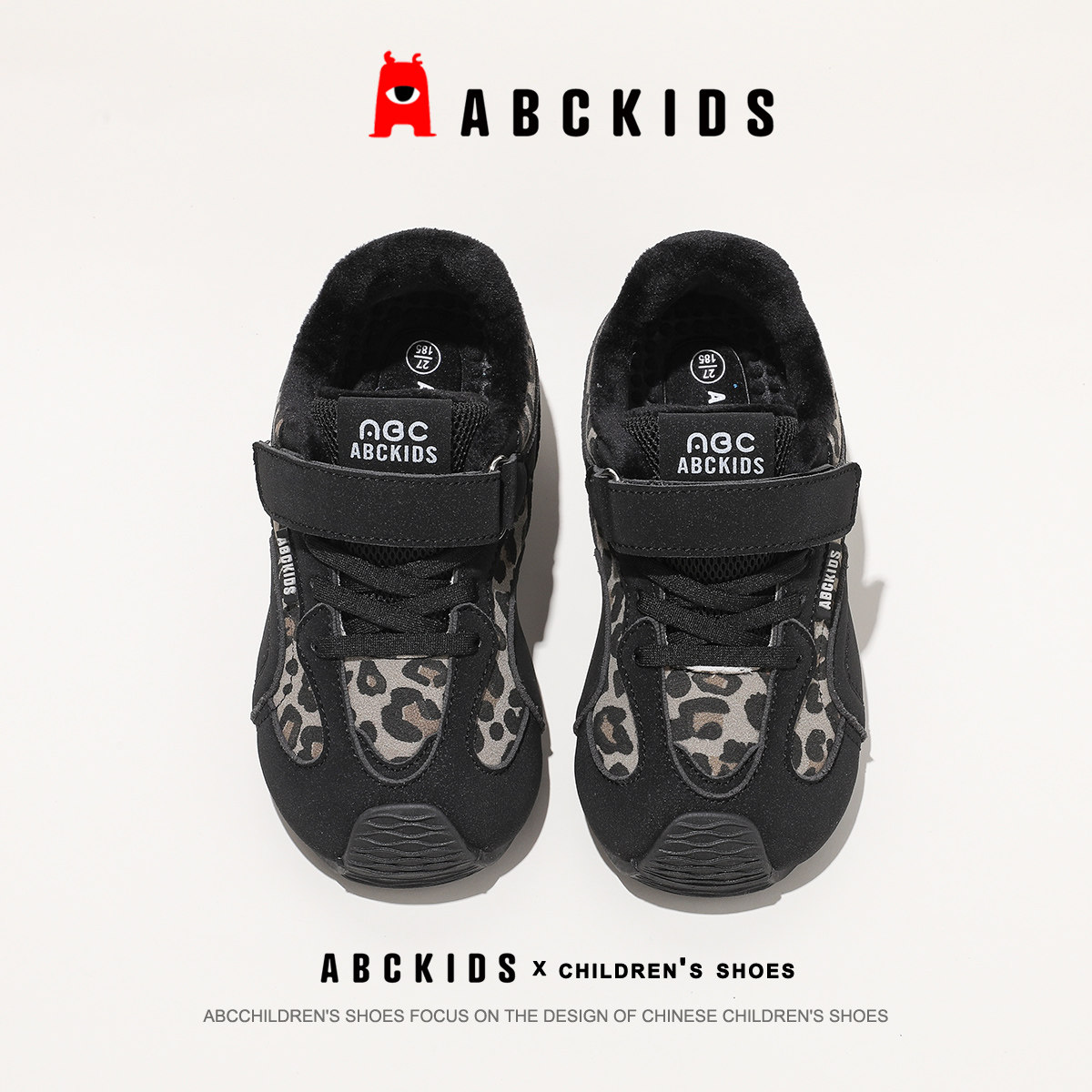 ABCkids童鞋男童加绒运动鞋冬季儿童豹纹二棉鞋中大童保暖棉鞋子