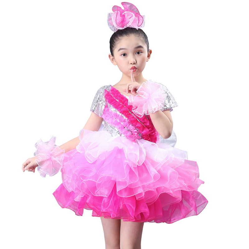 六一儿童礼服演出服幼儿园现代舞蹈表演服女童蓬蓬纱裙亮片公主裙