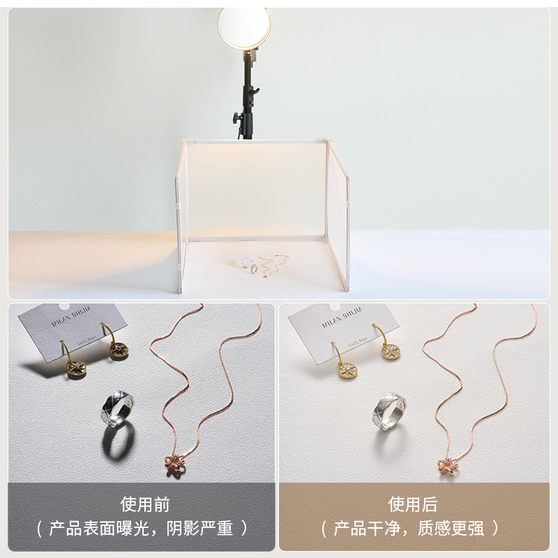 A3简易拍照柔光屏辅助摄影道具黑白金银反光板首饰静物产品影棚