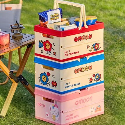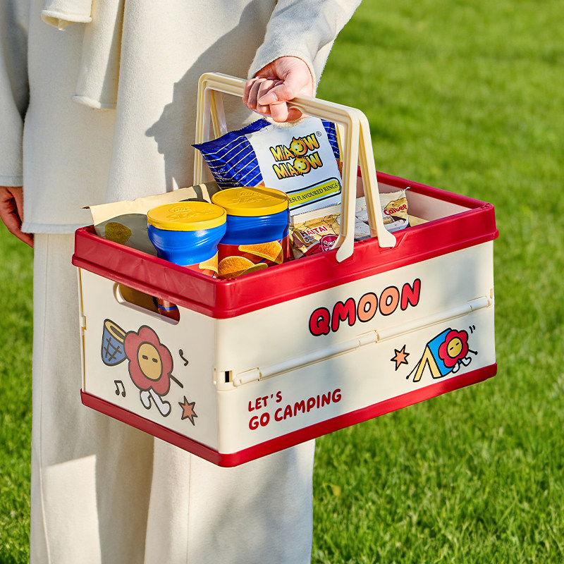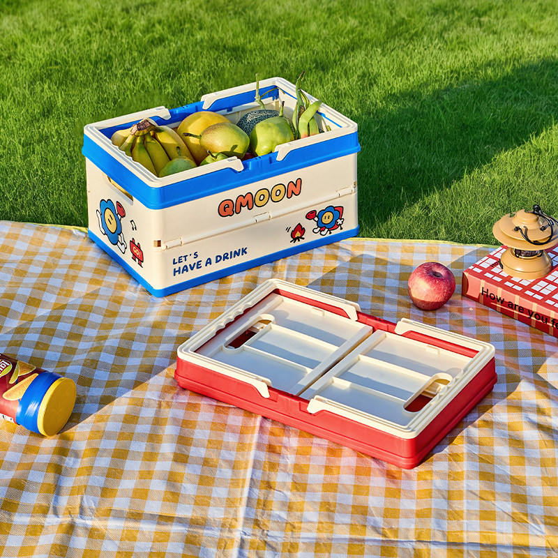 卡通露营折叠手提篮多功能超市购物篮户外野餐装备整理车载储物箱