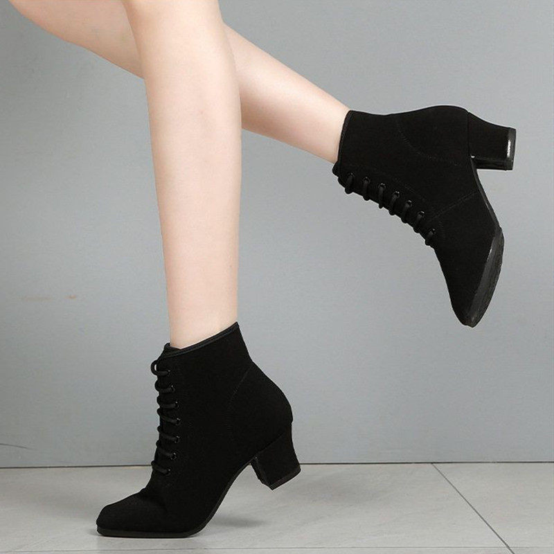 秋冬季高帮跳舞靴子牛津布软底女