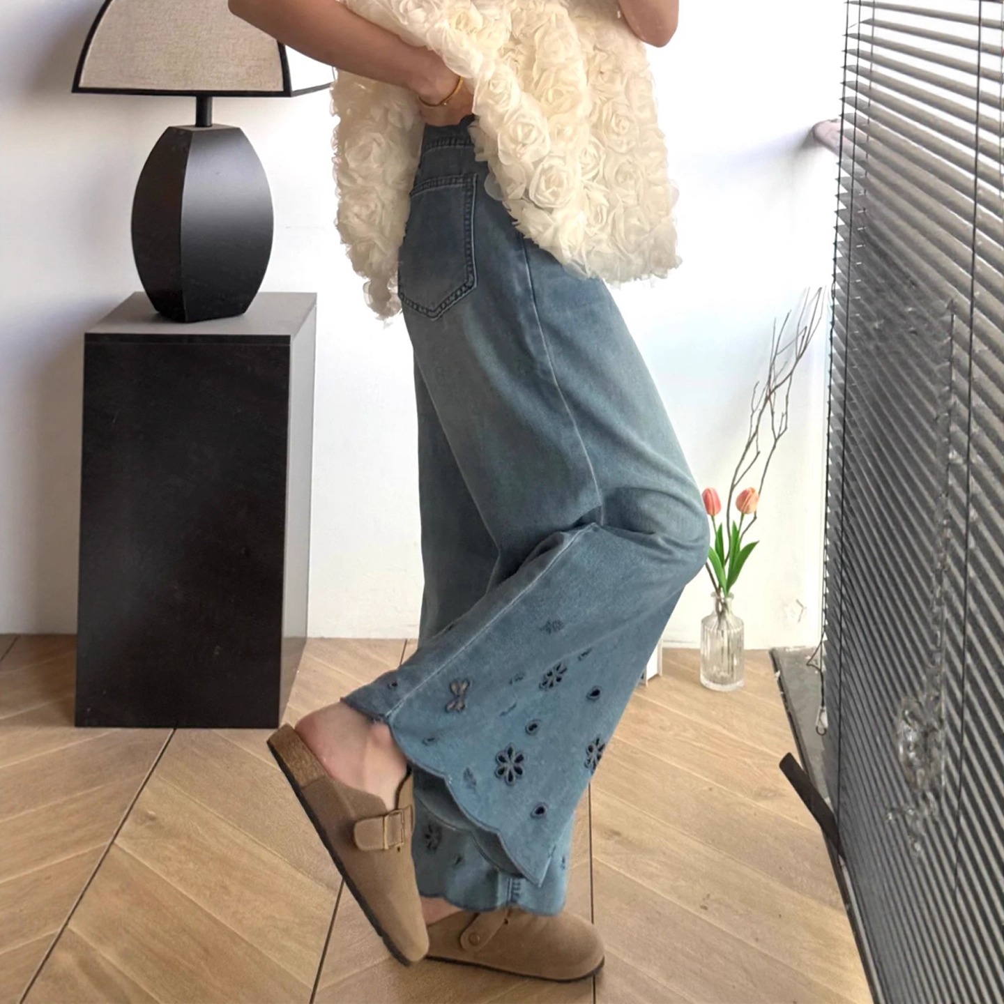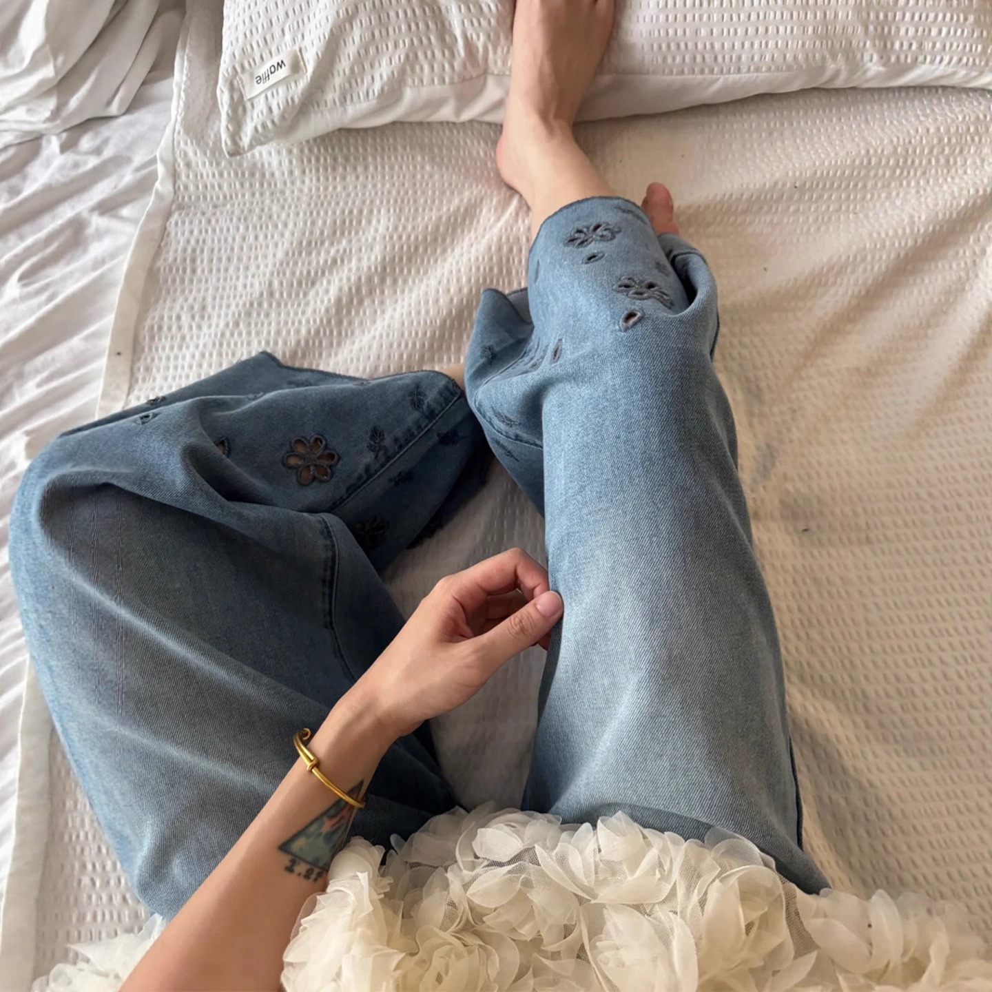 裤子2025新款今年流行爆款刺绣牛仔裤女款直筒大码胖mm九分阔腿裤