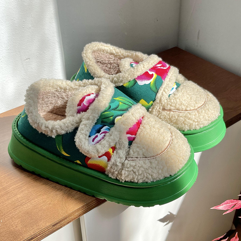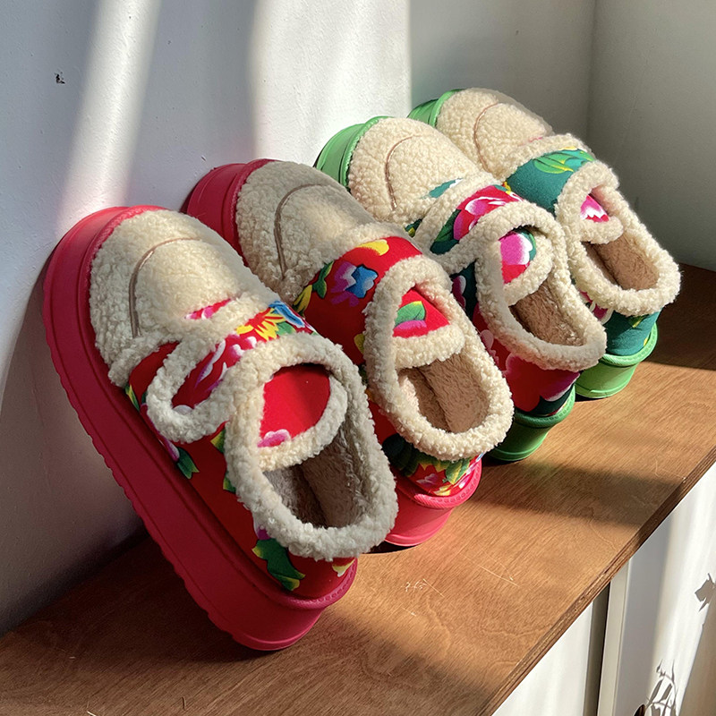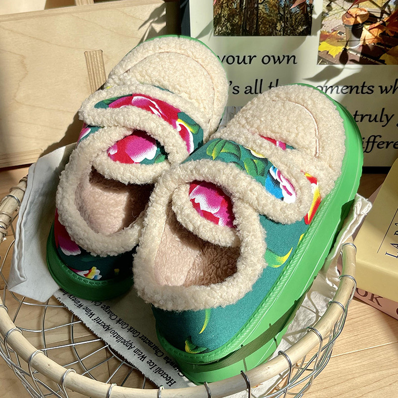 鲨际东北大花棉拖鞋保暖外穿棉鞋