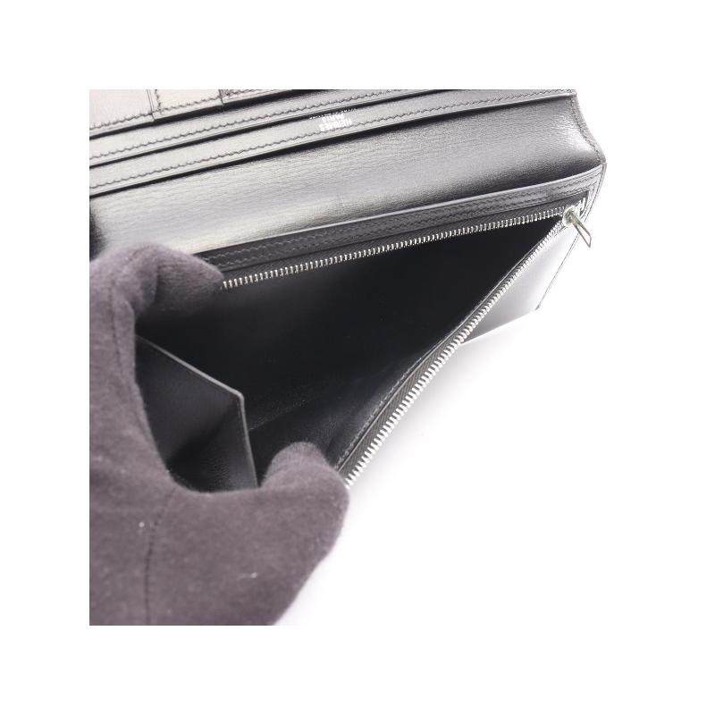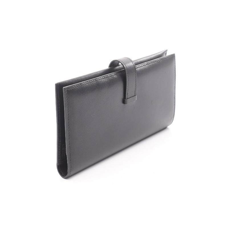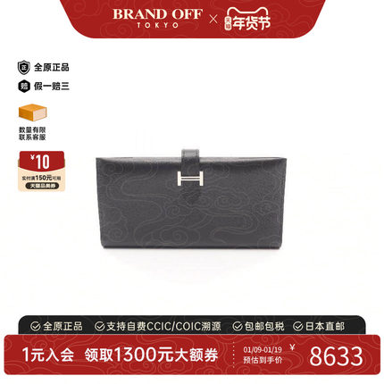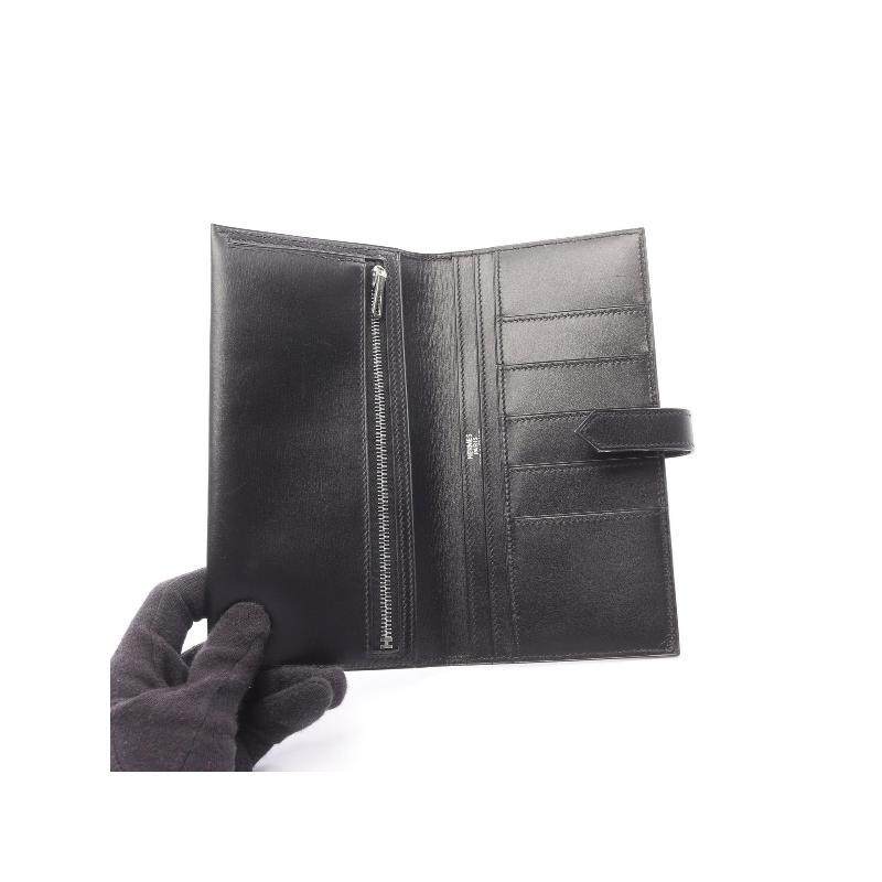 中古Hermes爱马仕女A级95新bi-fold双折牛皮长钱包黑色