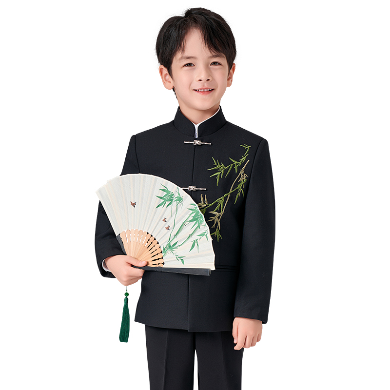 罗蒙新中式男童中山装西服套装中国风西装民国儿童主持人演出礼服