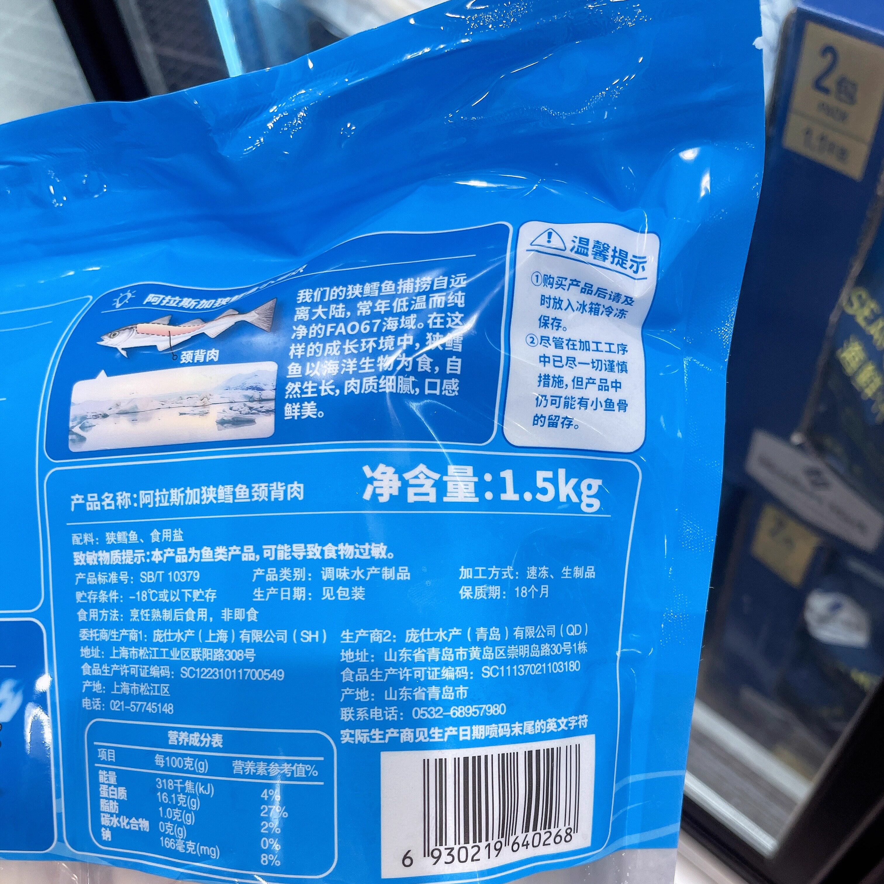阿拉斯加狭鳕鱼颈背肉1.5kg