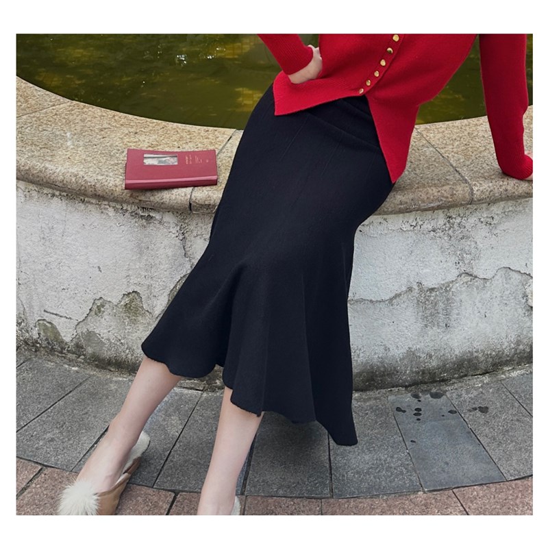 晚时光 9.30 复古高腰鱼尾针织半身裙 秋冬性感包臀中长裙女