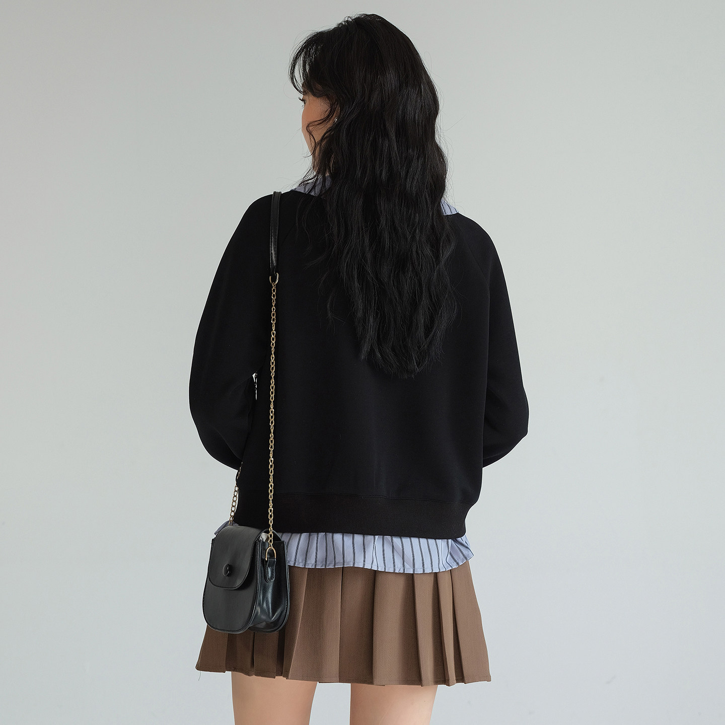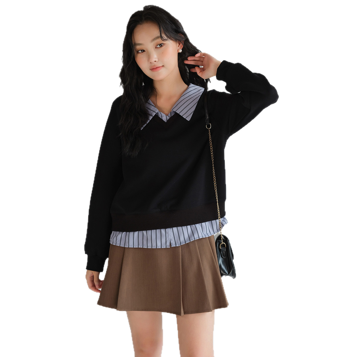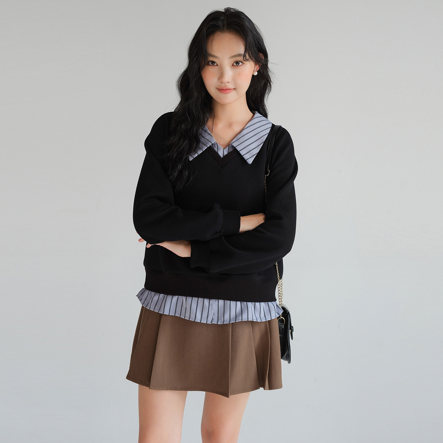 【条纹翻领假两件衬衫】蓝若水大码2026春装新款高级感针织上衣