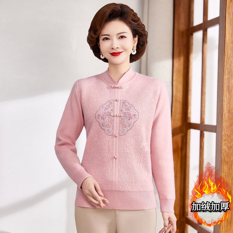 新中式加绒保暖妈妈毛衣40-50岁中年冬装女加绒加厚女士休闲上衣