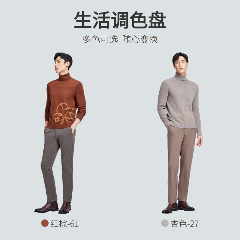 【含羊毛】金利来2025年秋冬羊毛男士套头高领毛衣男针织衫