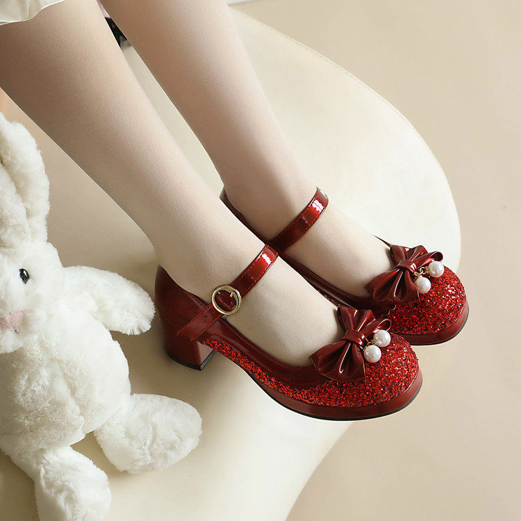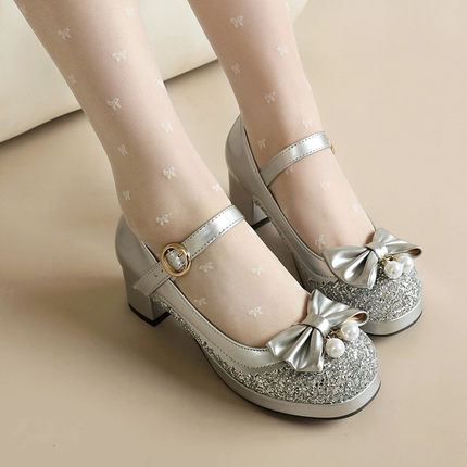 甜美少女中跟单鞋粗跟女鞋2026春秋新款圆头公主鞋百搭演出高跟鞋
