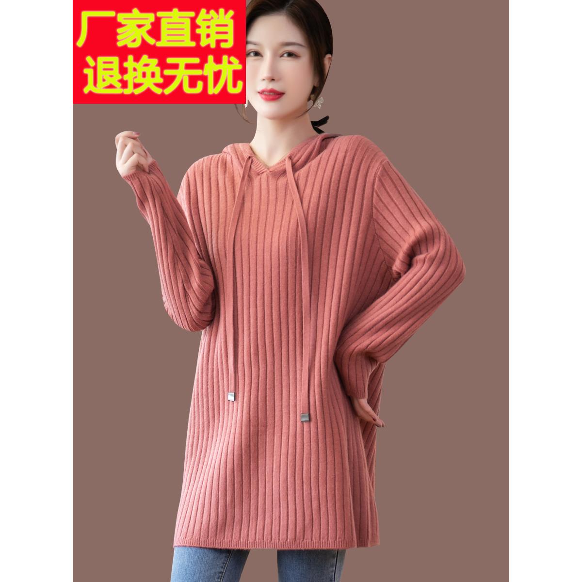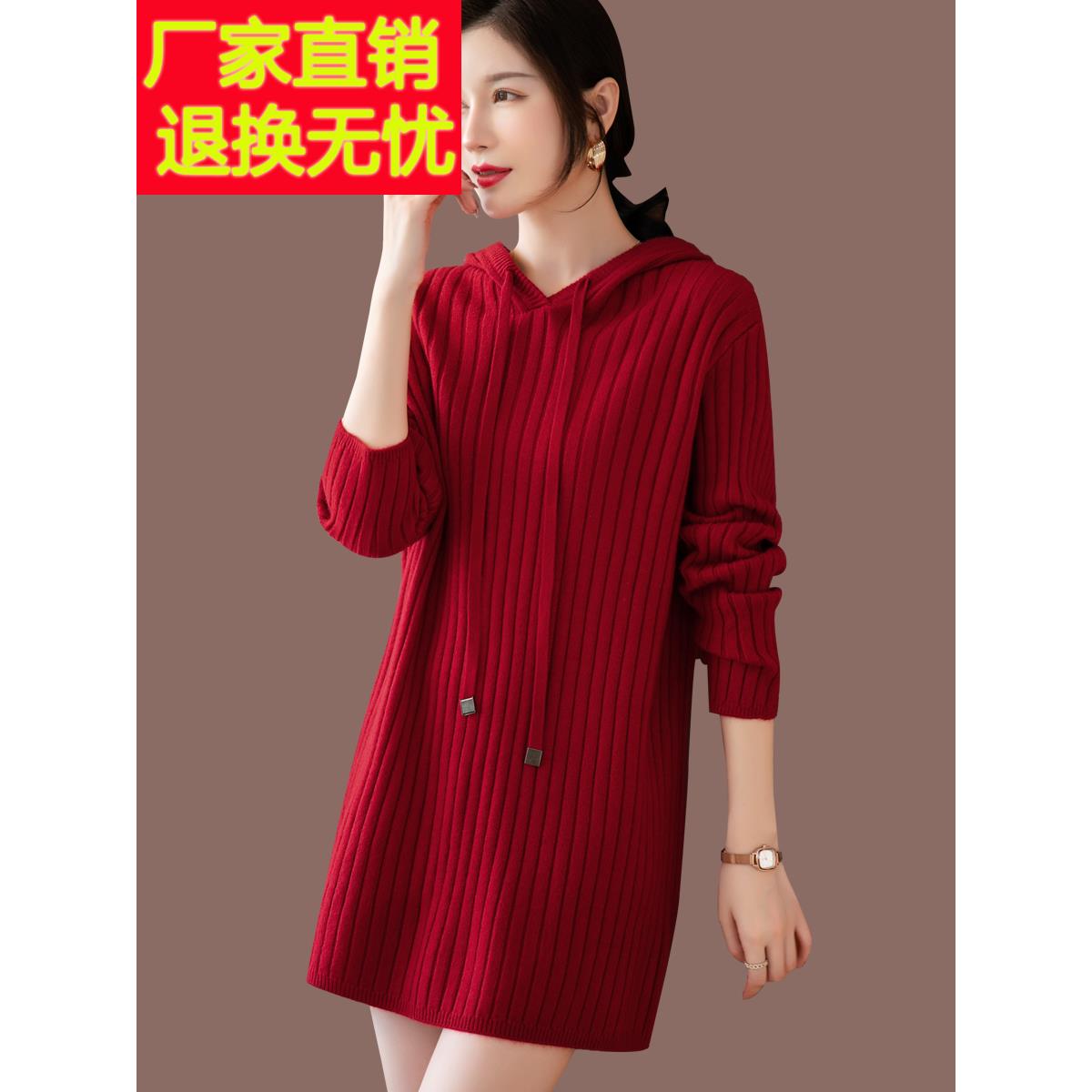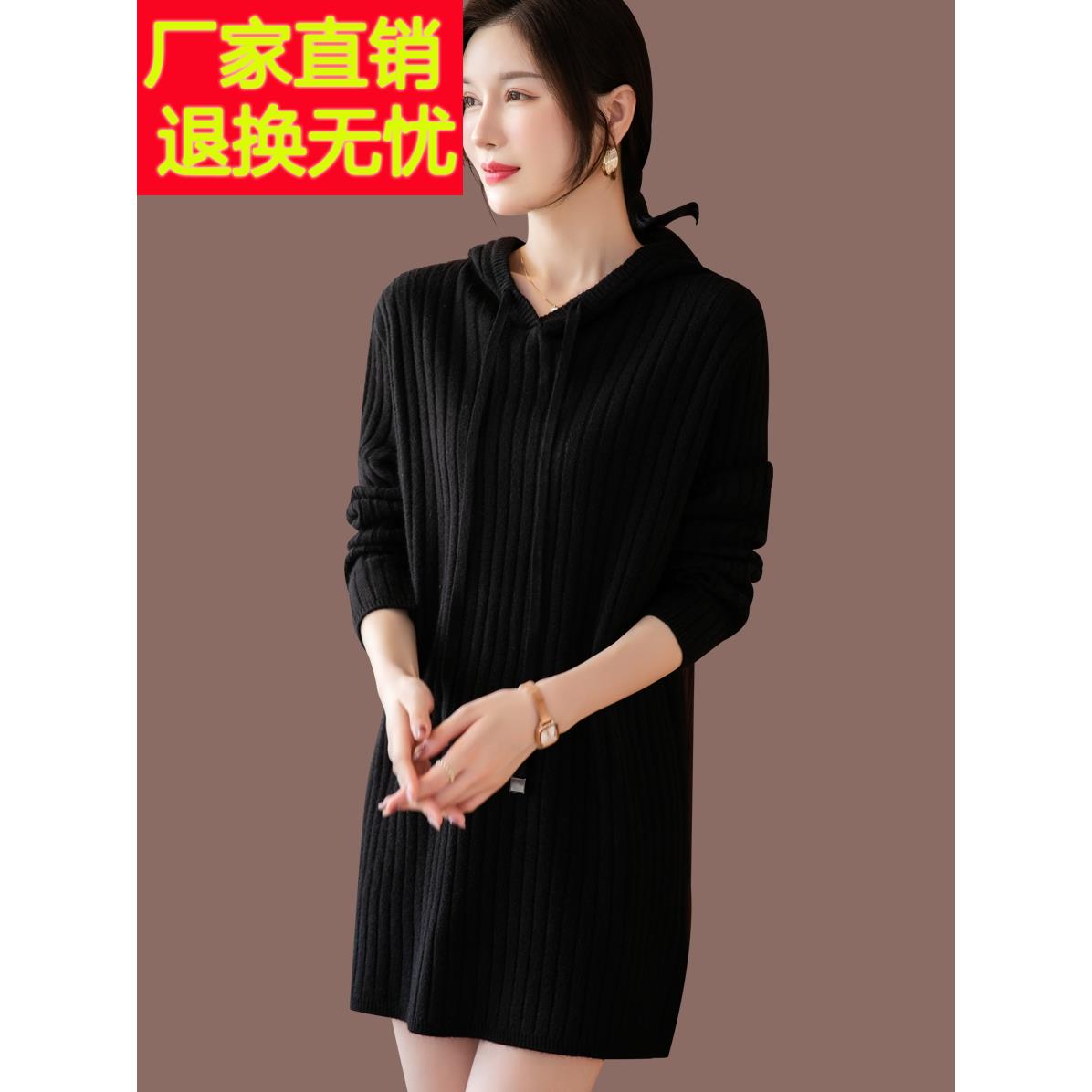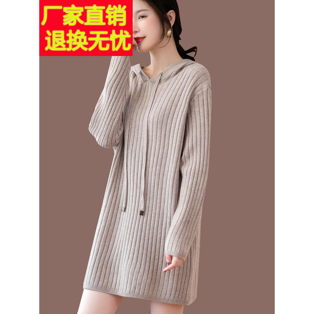 连帽针织连衣裙女秋冬2025新款羊毛衫宽松打底毛衣裙中长款