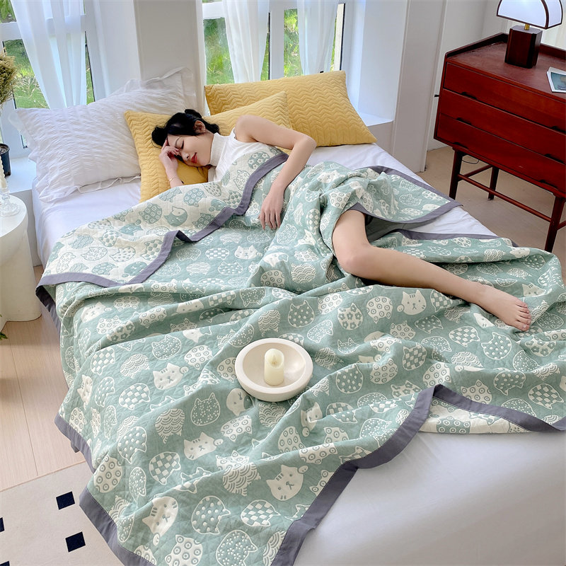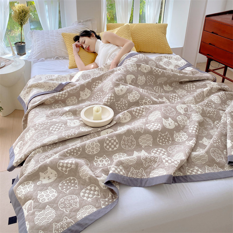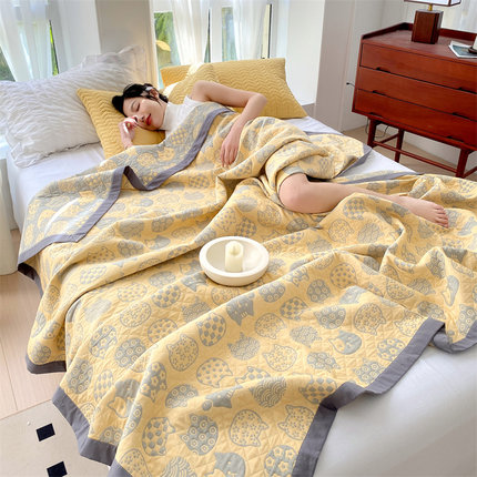 A类全棉纯棉三层纱毛毯被夏v被夏凉被空调被单双人可机水洗薄被子