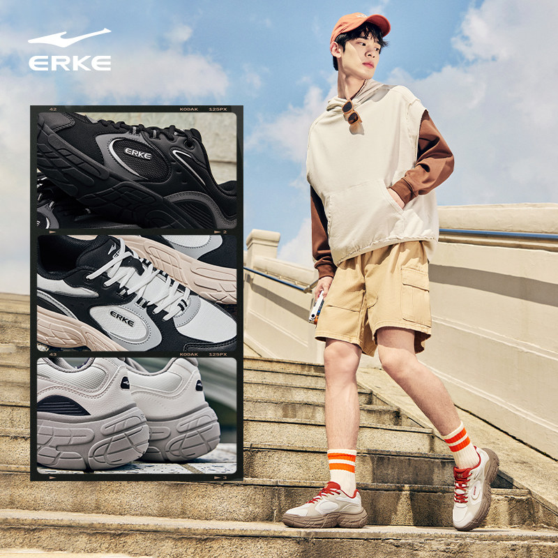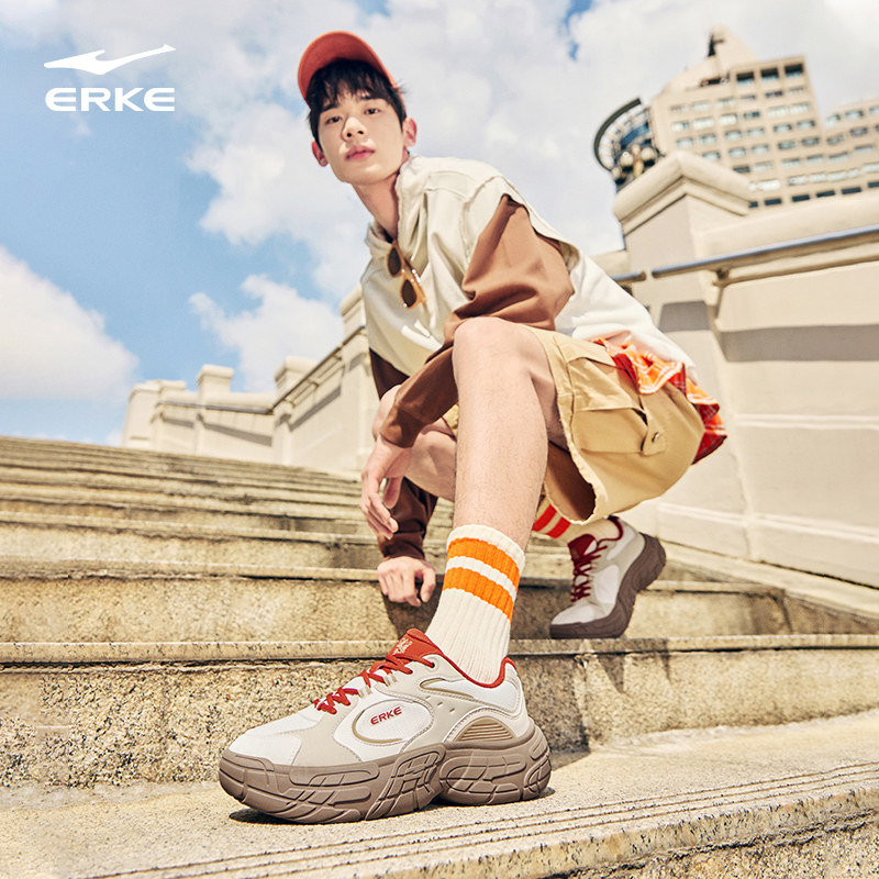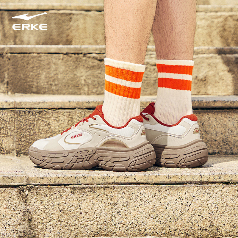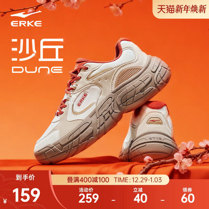 鸿星尔克沙丘新年款轮胎鞋男鞋秋冬红色休闲鞋运动鞋革面老爹鞋