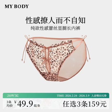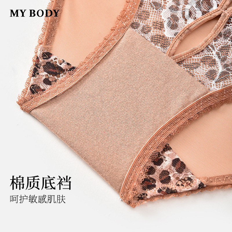 3件159|商场同款MYBODY新款内衣纯欲性感豹纹印花蕾丝低腰三角裤