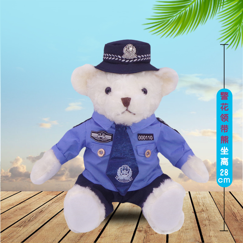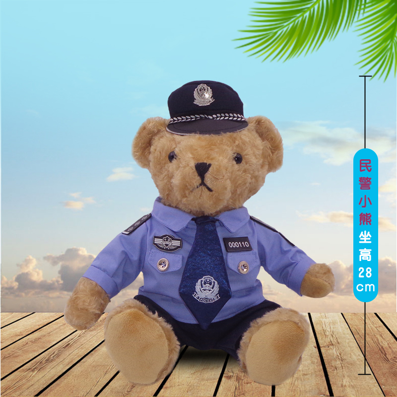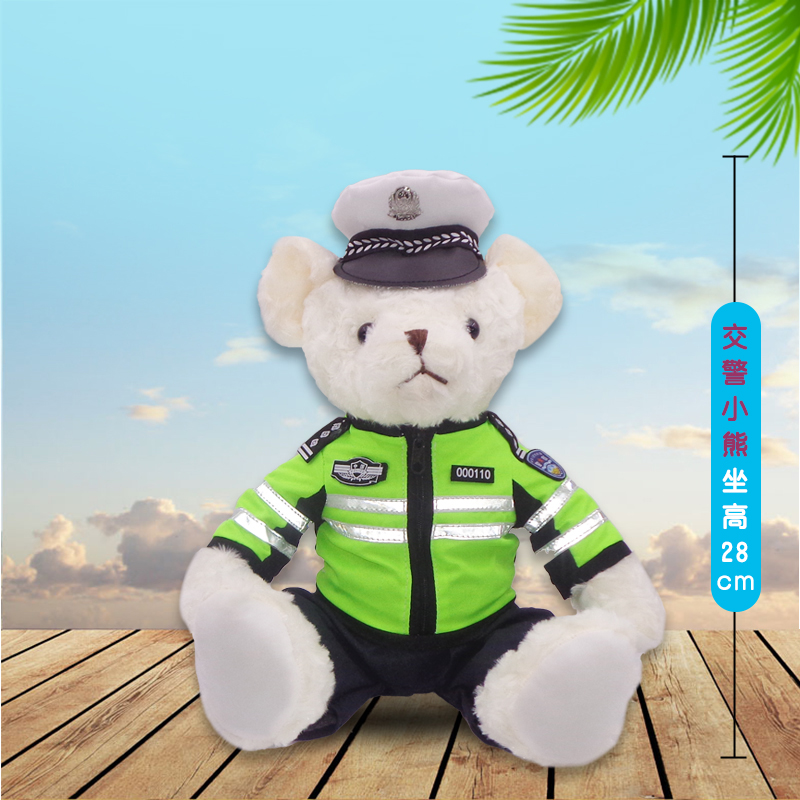 正版警察公仔交警小熊玩偶骑行制服警察熊摩托车男女毛绒玩具娃娃