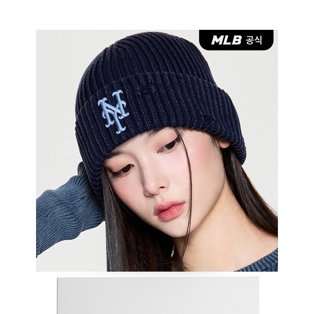 韩国直邮MLB 深蓝色复古基本款毛线帽 NYM
