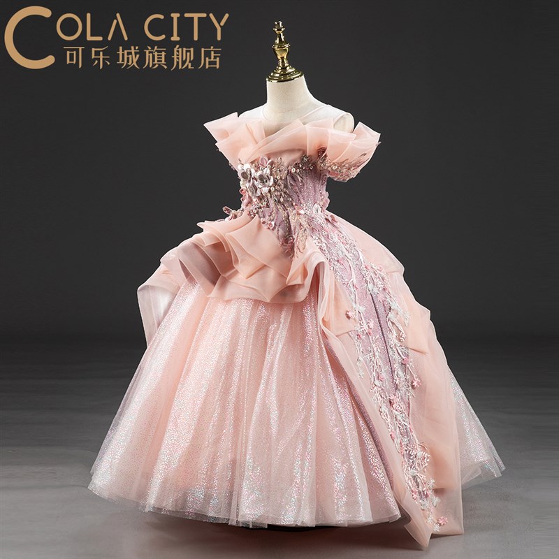 女童礼服重手工公主长裙齐地生日宴会婚纱花童走秀摄影钢琴演出服