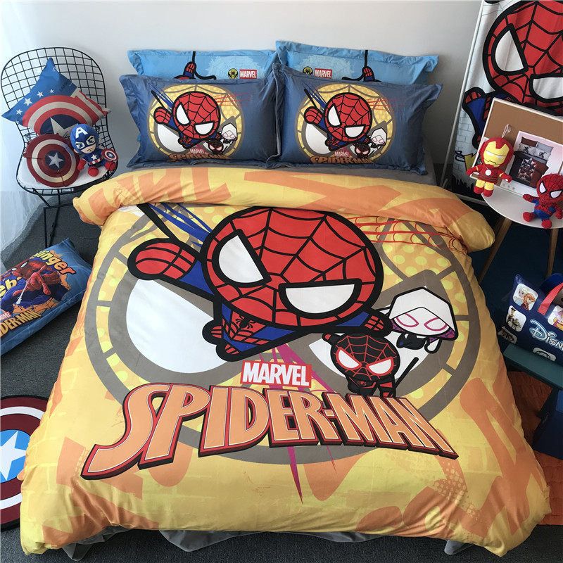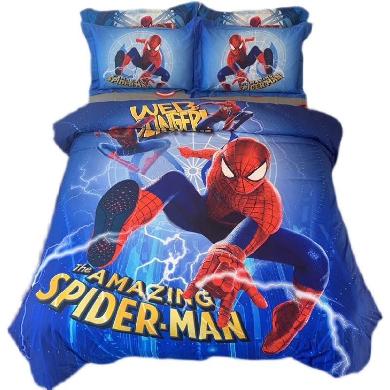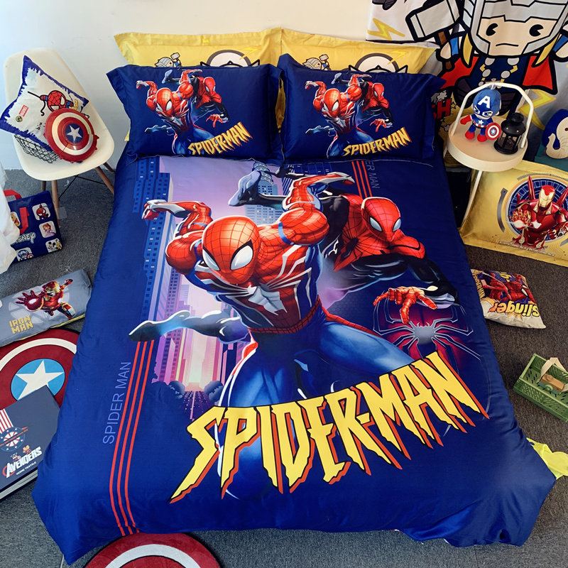 漫威蜘蛛侠四件套纯棉全棉迪士尼男孩儿童卡通被套三件套床上用品