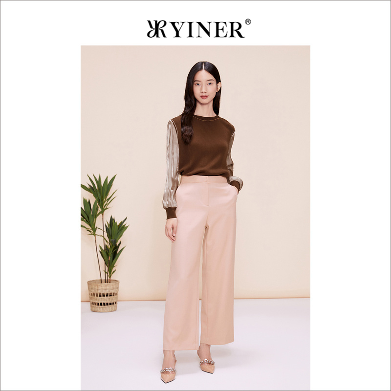 YINER音儿女装春季通勤羊毛直筒阔腿裤休闲裤