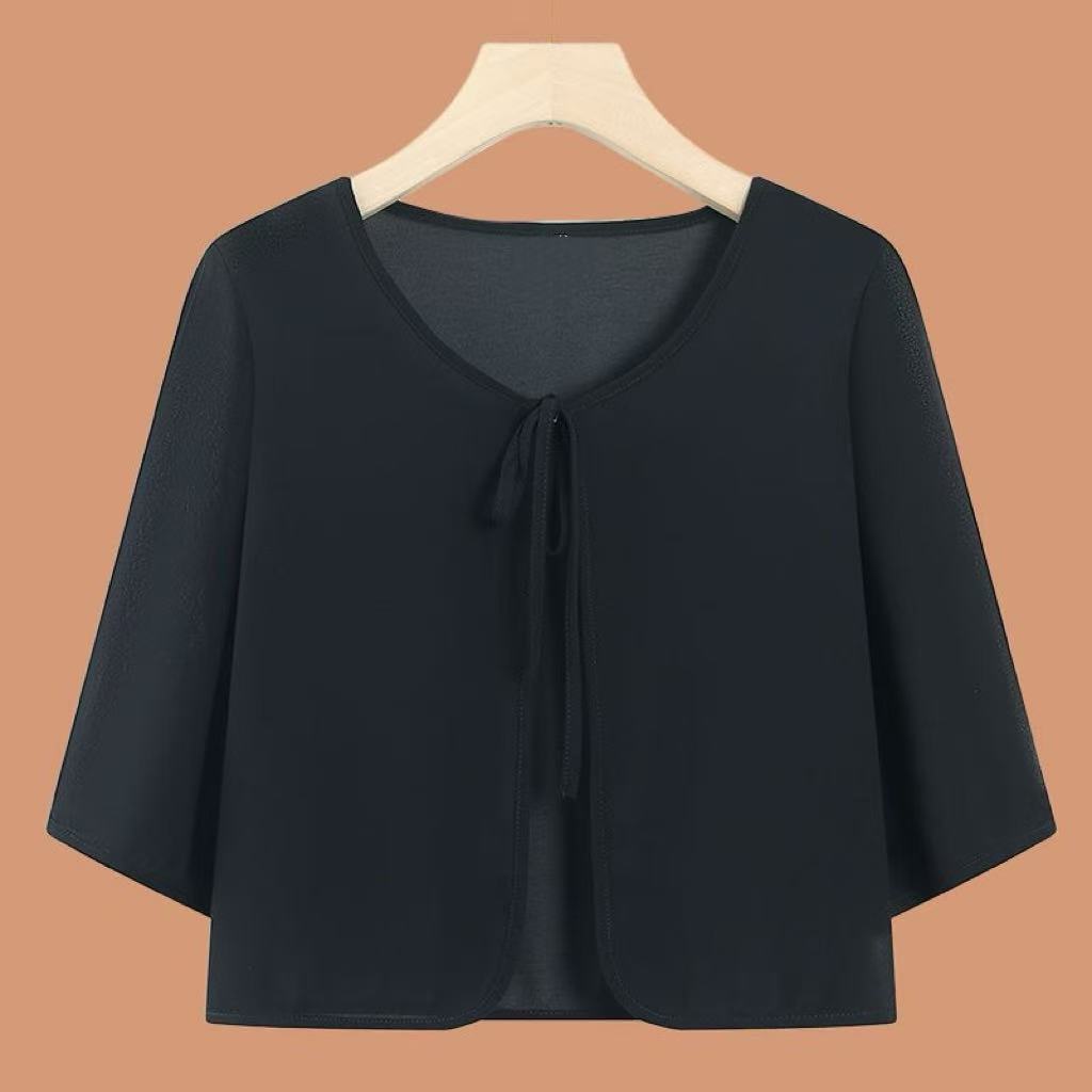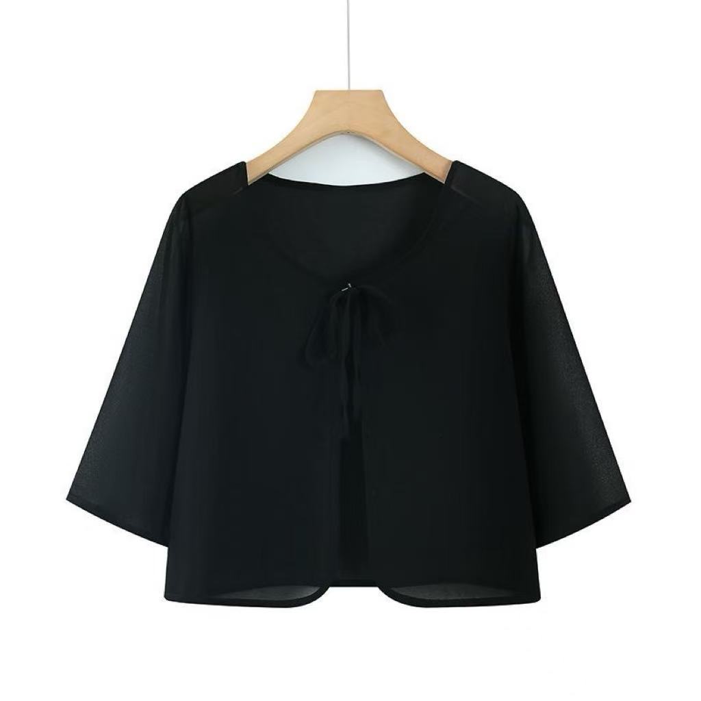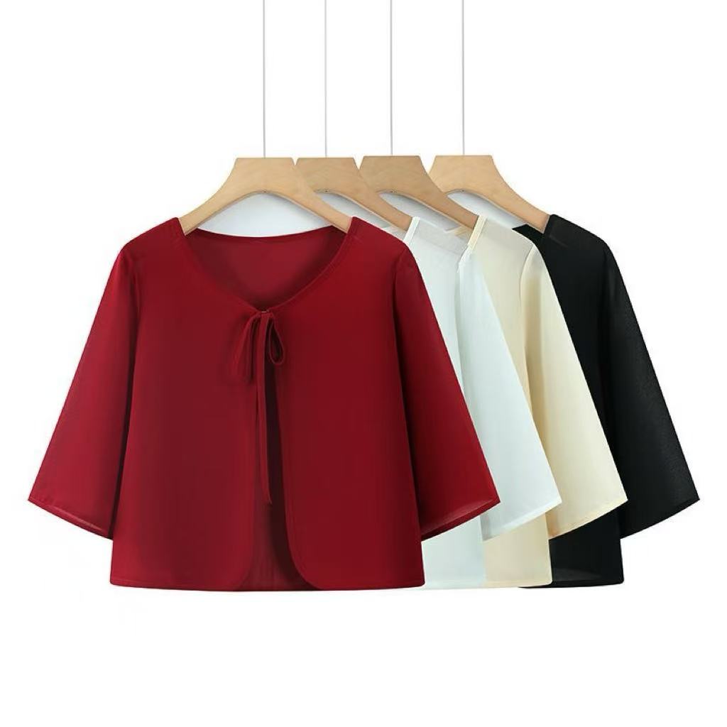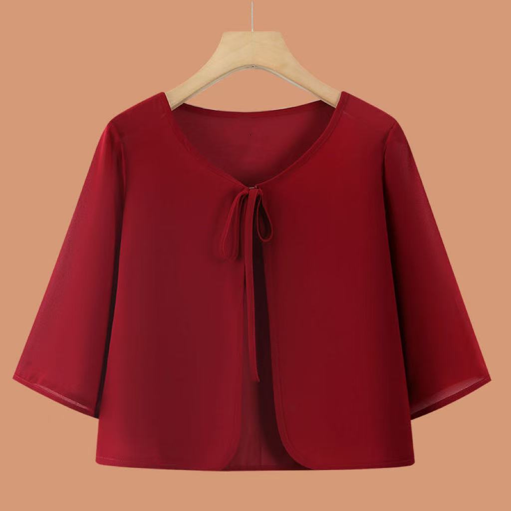 洋气妈妈夏装防晒披肩配裙子新款外搭短款雪纺系带罩衫薄款小外搭