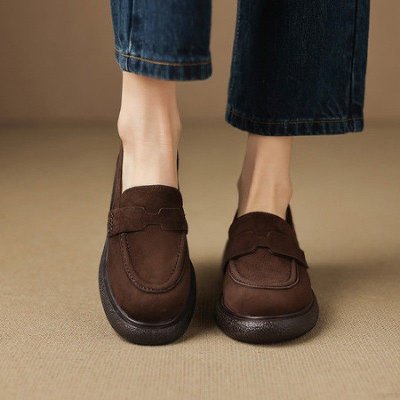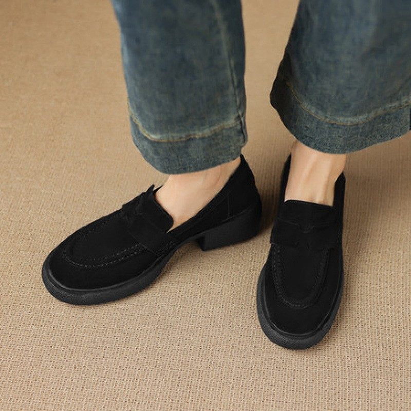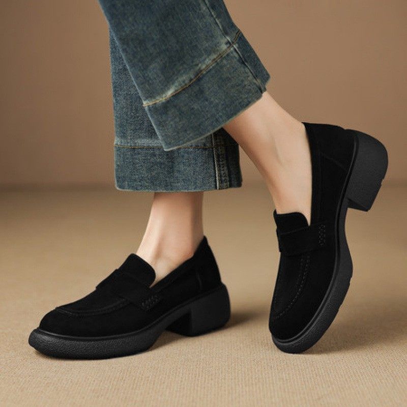 女士磨砂耐穿时尚2025年秋冬新款圆头粗跟中跟乐福鞋舒适深口单鞋