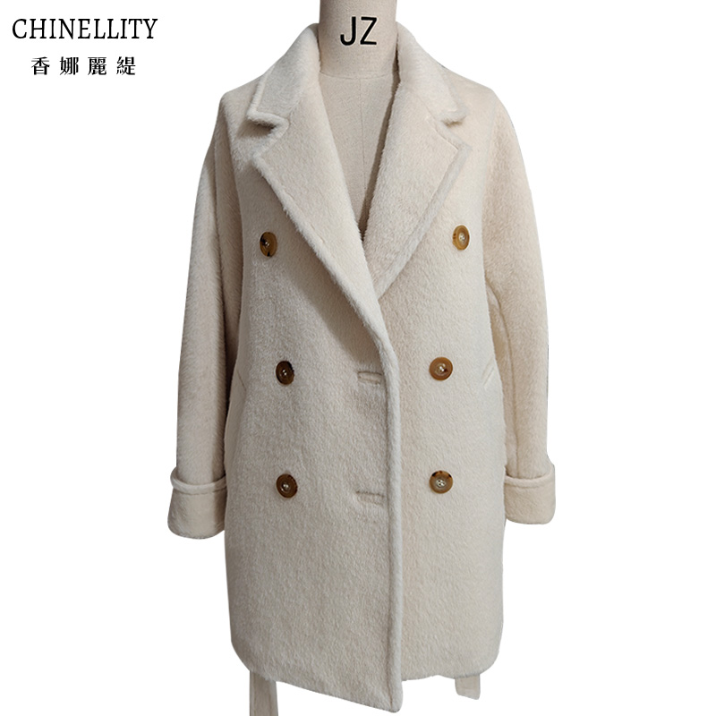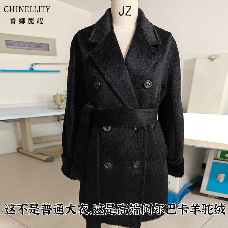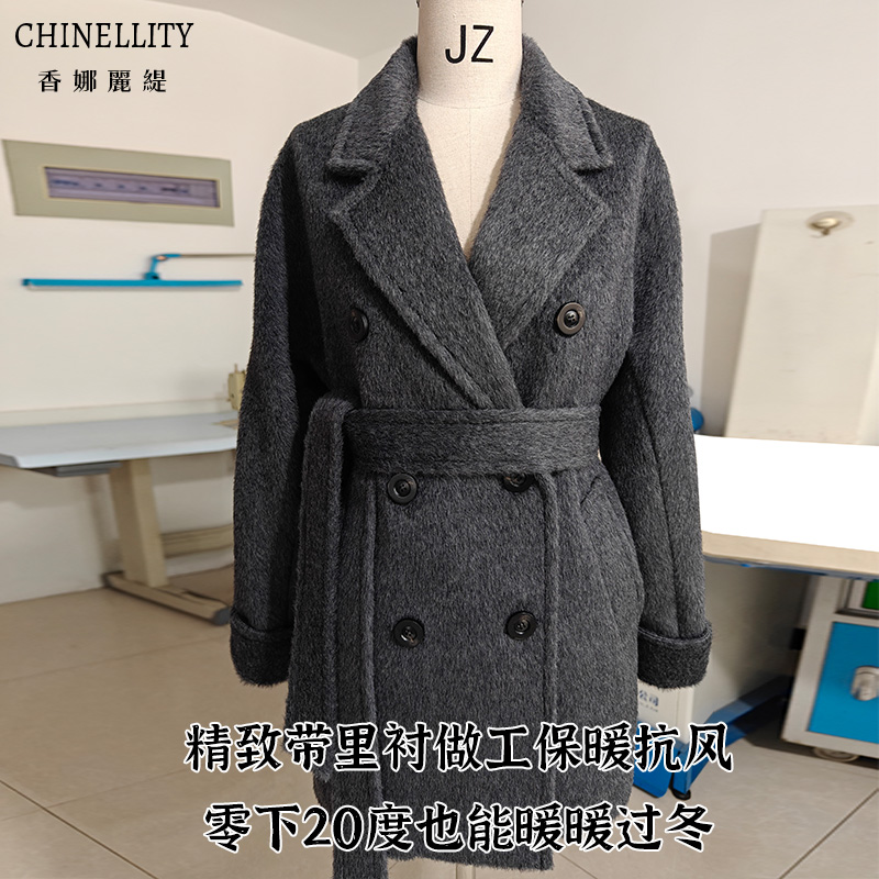 101801阿尔巴卡羊驼绒高版本大衣短款加厚白毛呢外套冬新款女