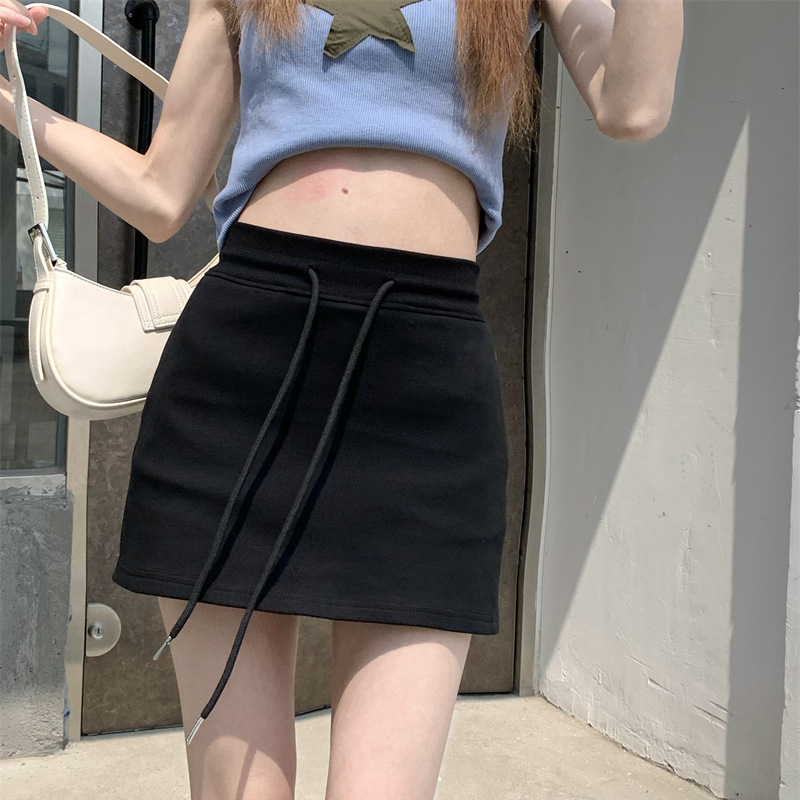 纯欲风辣妹抽绳运动短裙春夏季新款少女高腰百搭包臀A字半身裙子