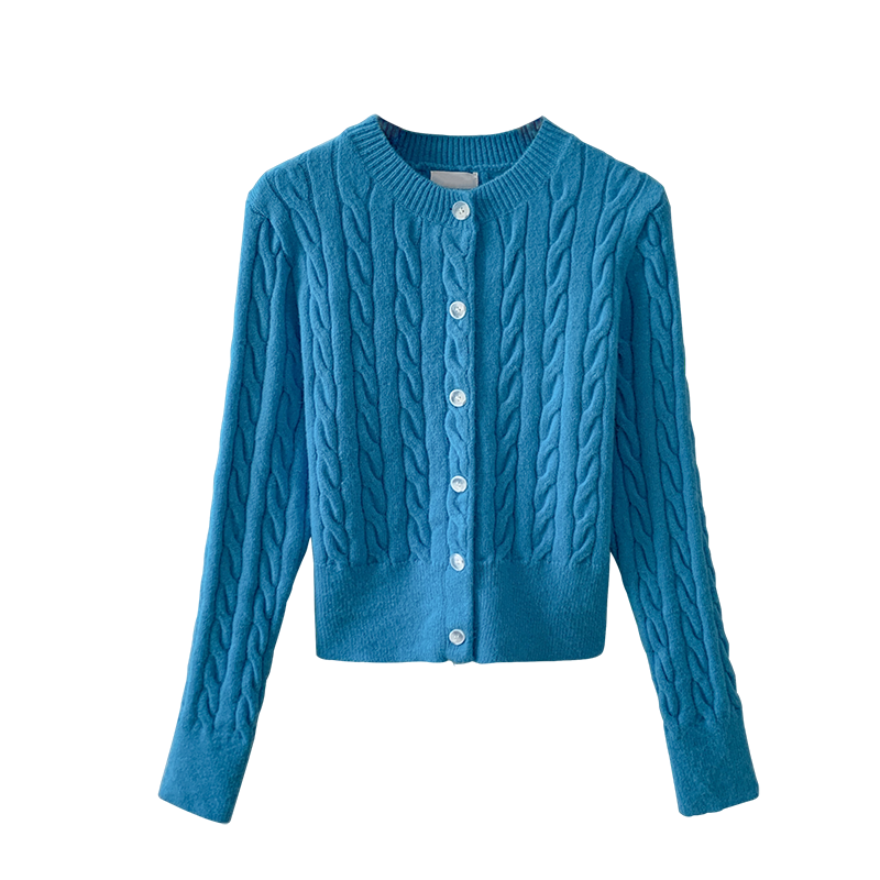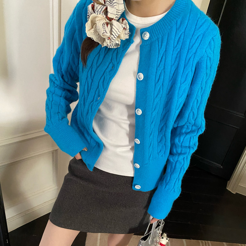 慵懒风针织麻花开衫女