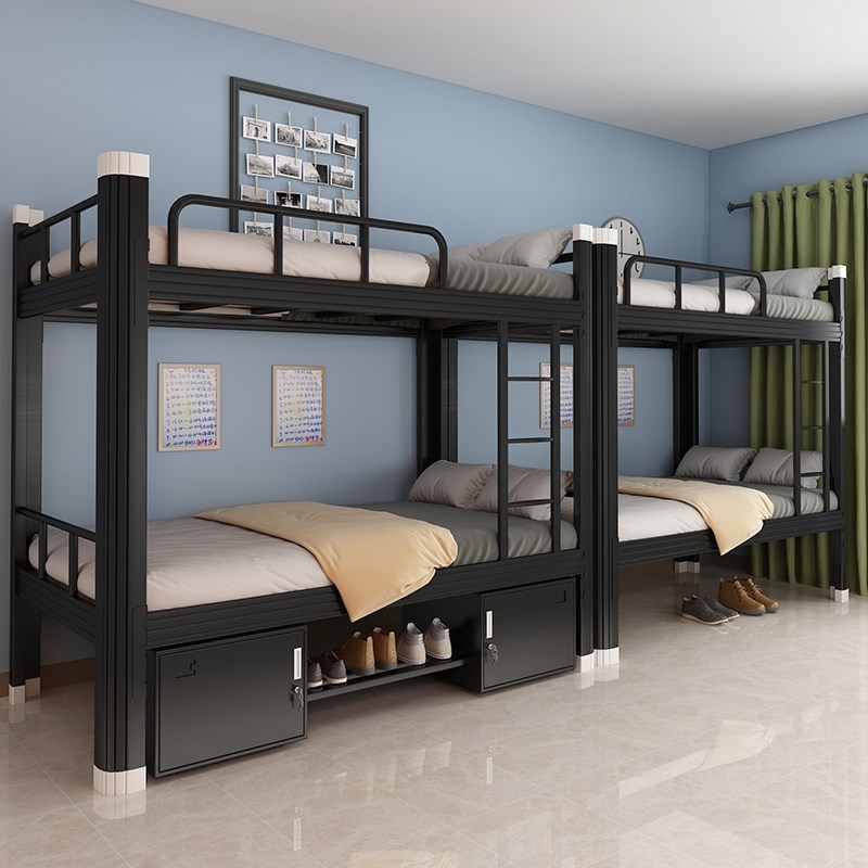 加厚双层床铁艺上下铺学生钢架高低床双人员工单人V铁架上下床宿