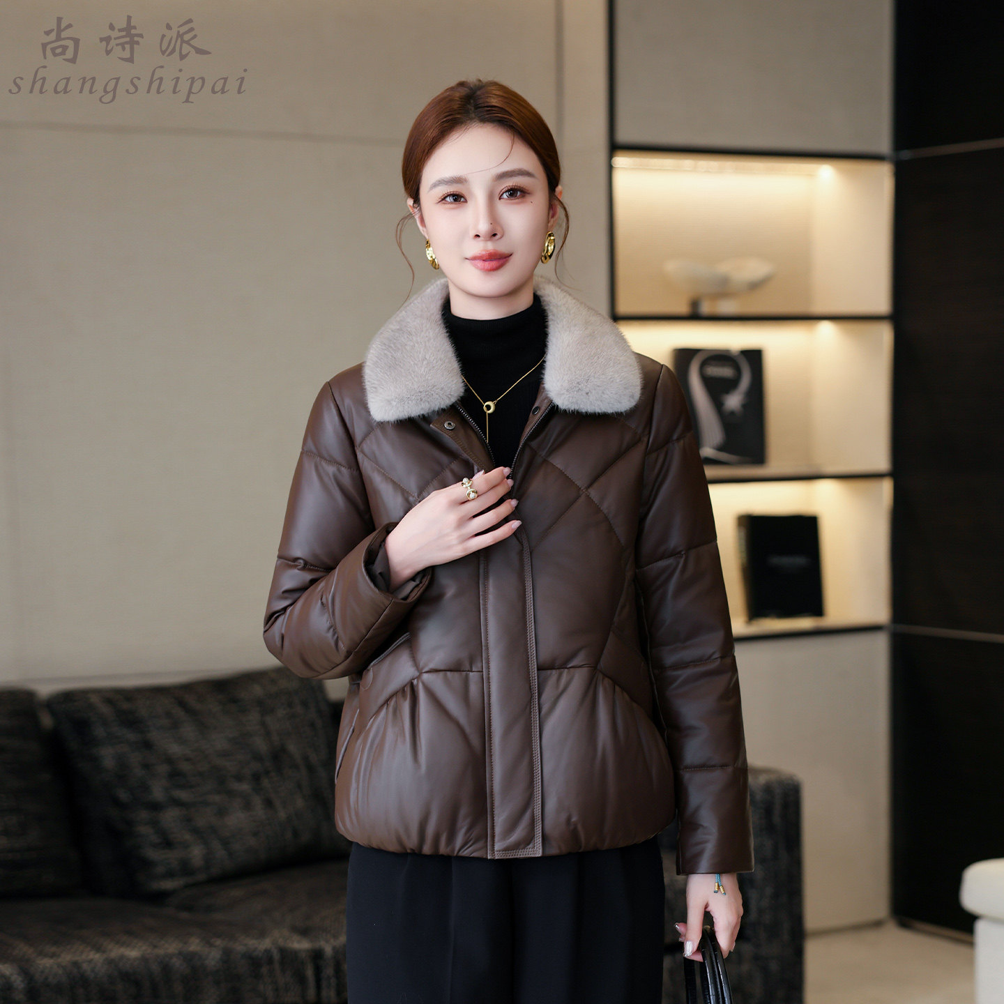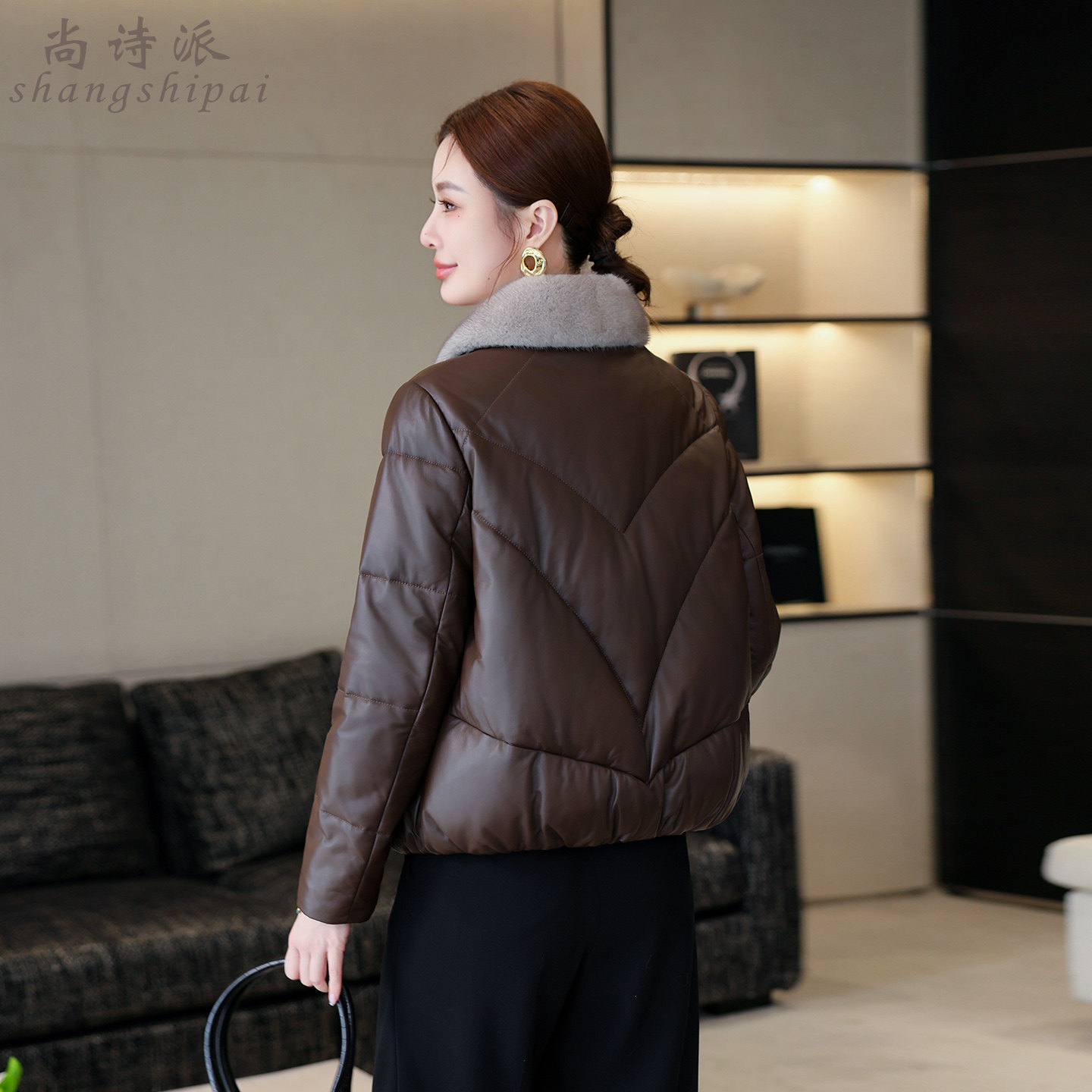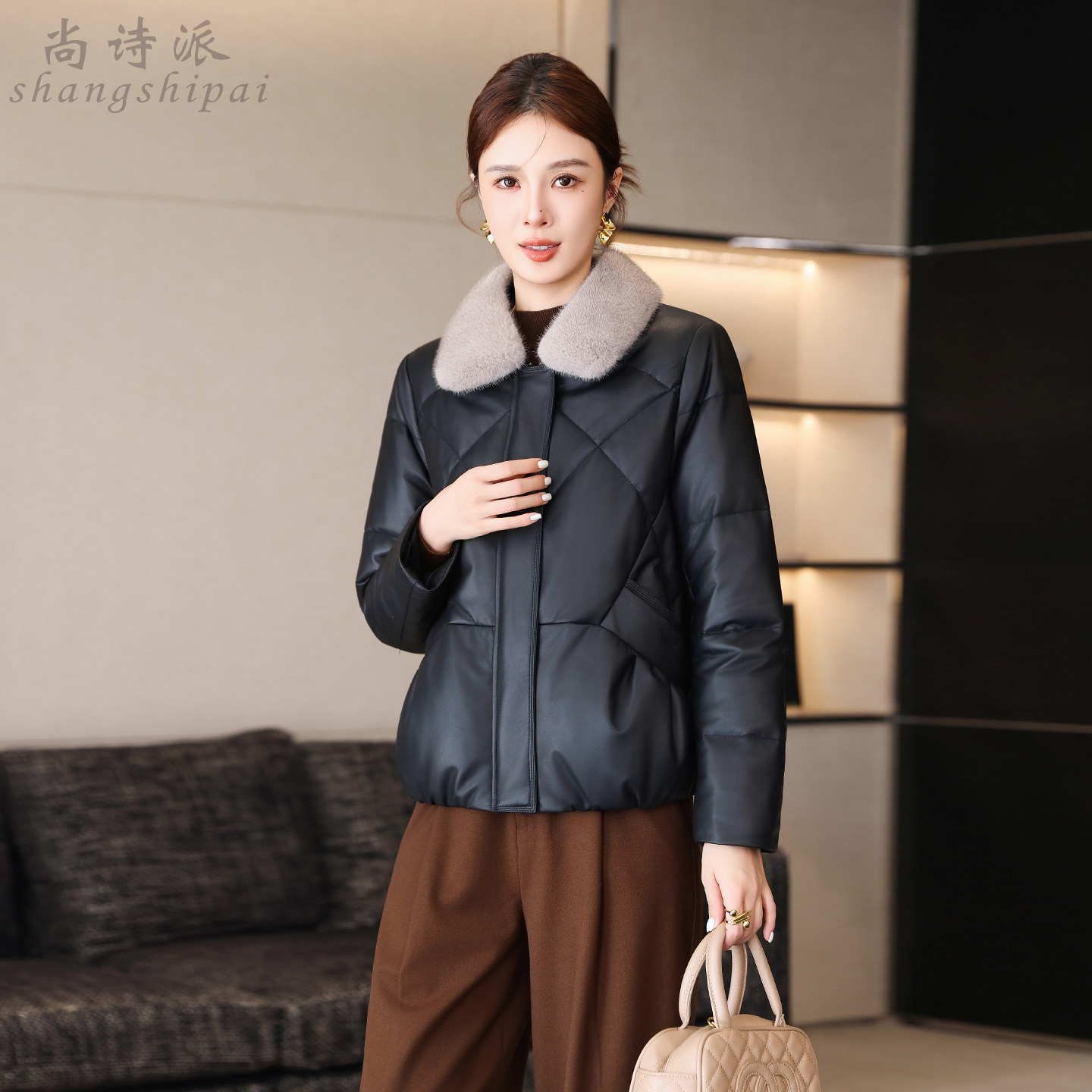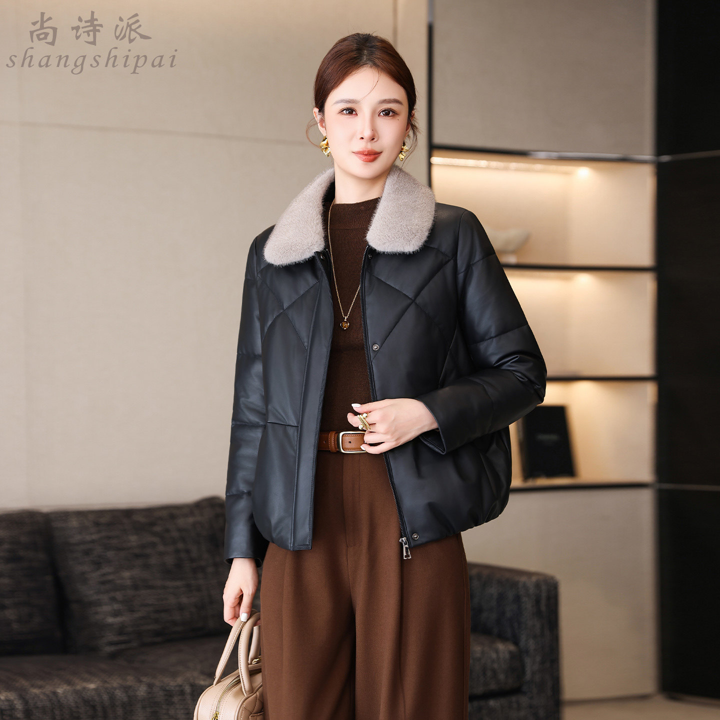 真皮羽绒女绵羊皮2025新款冬海宁水貂毛领可拆卸妈妈皮衣短款外套