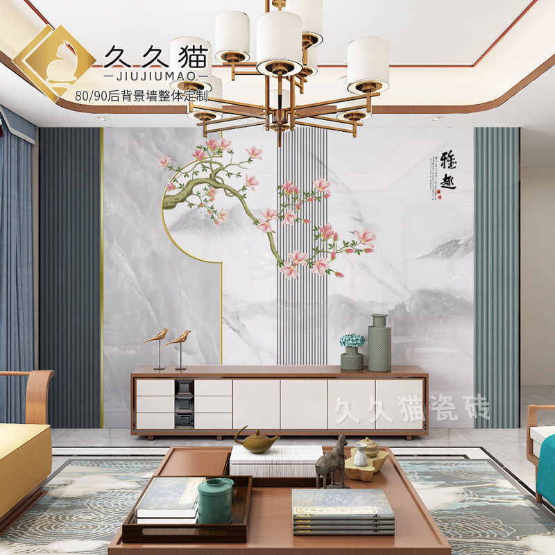 客厅艺术岩板背景墙n格栅微晶石电视墙瓷砖影视墙全屋定制沙发墙