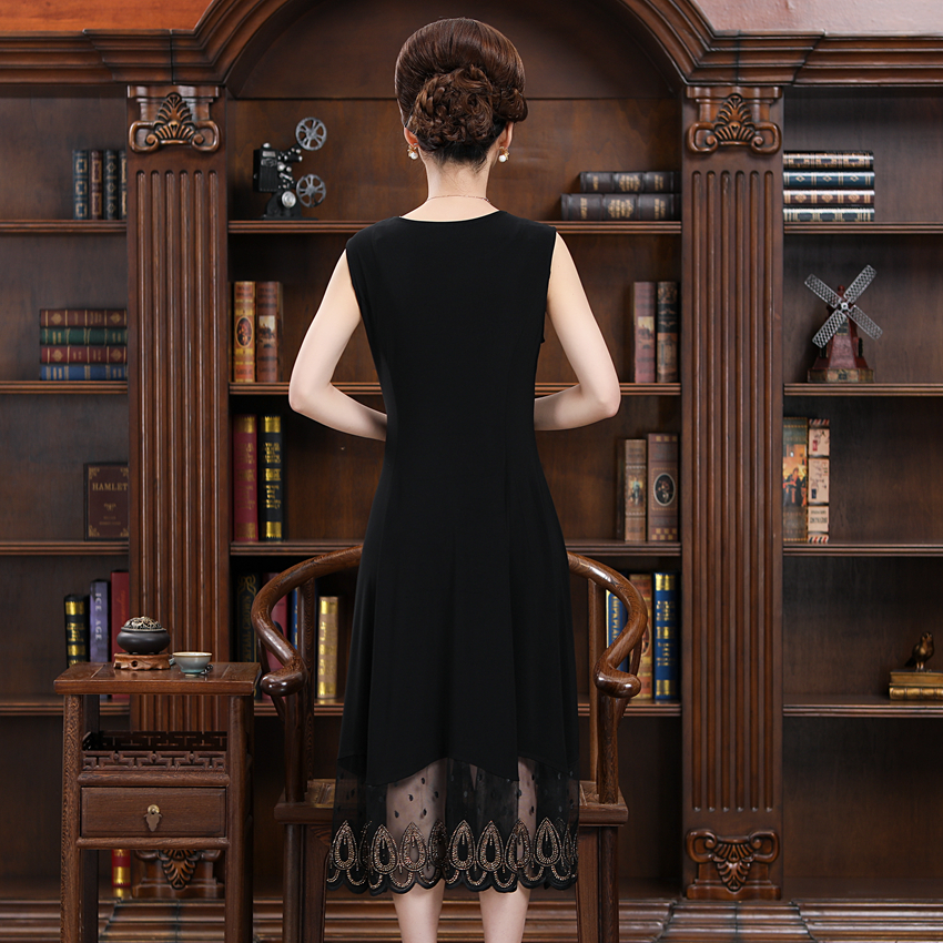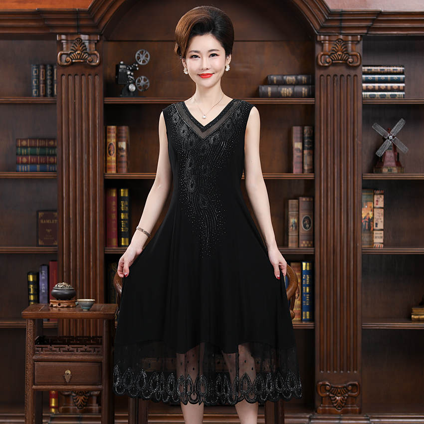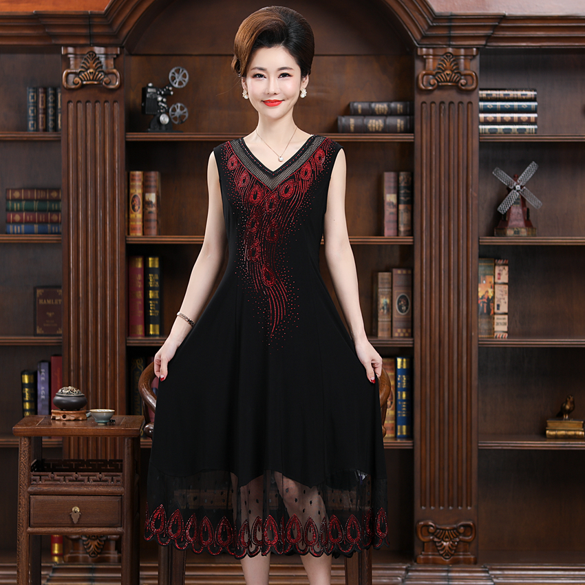 典云间夏装妈妈宽松高端气质无袖连衣裙中年女装镶钻背心打底衫