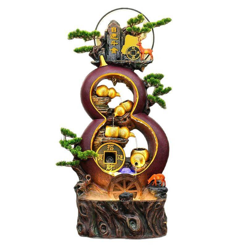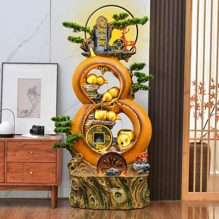 落地葫芦风水轮循环水流水摆件假山鱼缸中式店铺开业客厅招财装饰