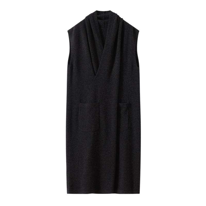 【灵感搭子】叠领全羊毛套头针织中长款马甲背心裙女宽松H版无袖