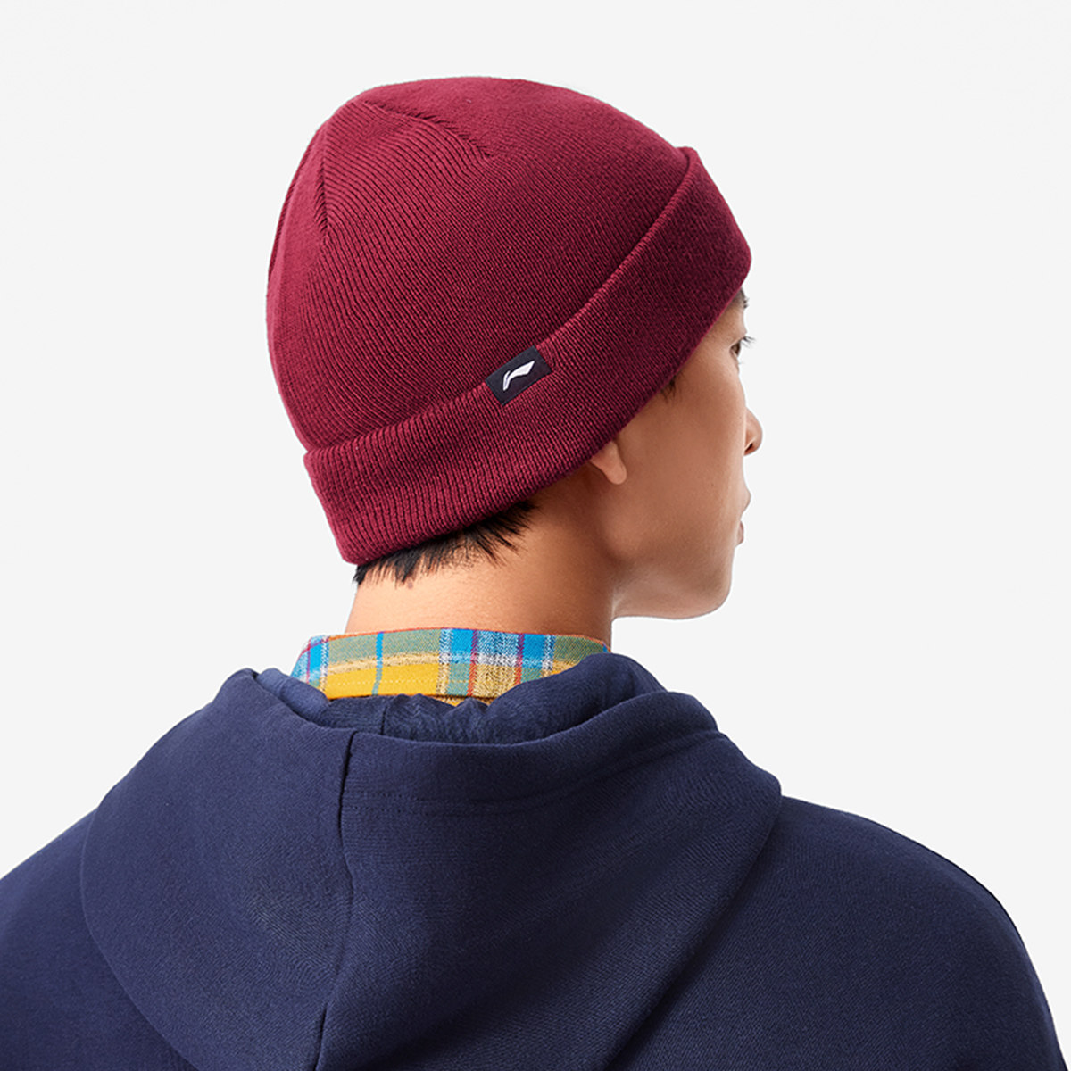 李宁正品运动生活系列男女同款时尚舒适抗静电翻边针织帽AMZU045